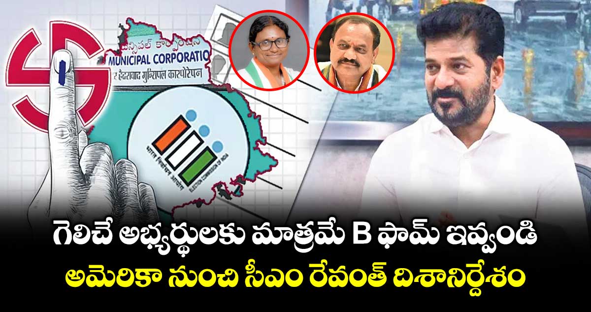 హైదరాబాద్: మున్సిపల్ ఎన్నికల్లో గెలిచే అభ్యర్థులకు మాత్రమే B ఫామ్ ఇవ్వాలని సూచించారు సీఎం రేవంత్ రెడ్డి. శనివారం (జనవరి 31) కాంగ్రెస్ పార్టీ నిర్వహించిన జూమ్ మీటింగ్ లో అమెరికా నుంచి పాల్గొన్న సీఎం.. పార్టీ శ్రేణులకు దిశానిర్దేశం చేశారు. టీ పీసీసీ చీఫ్ మహేశ్ కుమార్ గౌడ్, ఇన్ చార్జ్ మీనాక్షి సహా పలువురు మంత్రులు ఆన్లైన్మీటింగుకు హాజరయ్యారు.