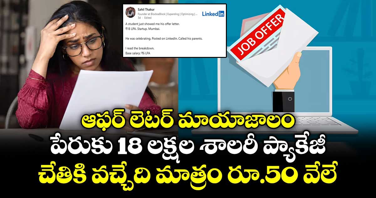 ముంబైలోని ఒక స్టార్టప్ కంపెనీ ఒక విద్యార్థికి ఏడాదికి రూ.18 లక్షల భారీ ప్యాకేజీని ఆఫర్ చేసింది. ఆ సంఖ్యను చూసి ఆ విద్యార్థి తన తల్లిదండ్రులకు ఫోన్ చేసి సంబరపడిపోయాడు. కానీ సాహిల్ ఆ ఆఫర్ లెటర్ను లోతుగా పరిశీలించినప్పుడు అసలు నిజం బయటపడింది. ఆ భారీ శాలరీ ప్యాకేజీలో గ్యారెంటీగా వచ్చే ఫిక్స్డ్ జీతం జస్ట్ రూ.6 లక్షలు మాత్రమే. అంటే నెలకు చేతికి వచ్చేది అక్షరాలా రూ.50వేలు మాత్రమే. ఇక మిగిలిన రూ.12 లక్షలు కేవలం కాగితాలకే పరిమితమైన లెక్క.