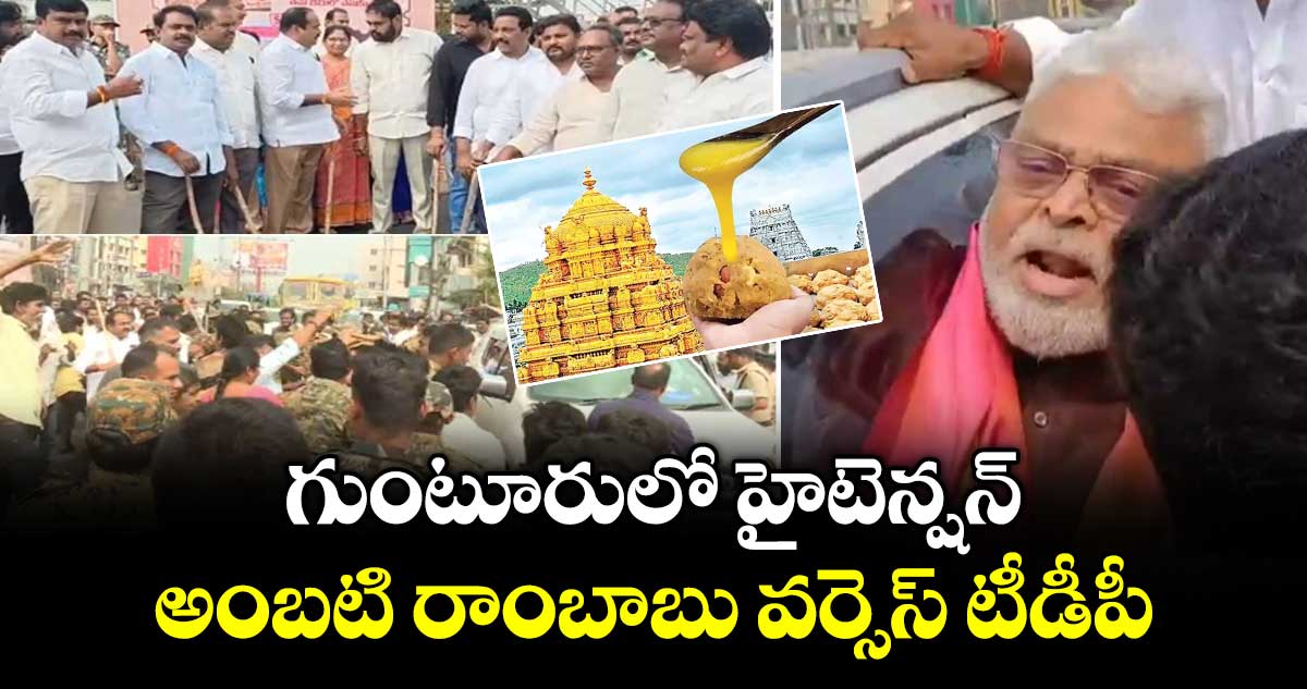 తిరుమల కల్తీ నెయ్యి కేసులో ఇటీవల సీబీఐ సిట్ సమర్పించిన ఫైనల్ చార్జిషీట్ తో ఏపీలో అధికార కూటమి, ప్రతిపక్ష వైసీపీ మధ్య వార్ పీక్స్ కి చేరింది. ఈ క్రమంలో శనివారం ( జనవరి 31 ) గుంటూరు జిల్లా పర్యటనకు వెళ్లిన మాజీ మంత్రి అంబటి రాంబాబును టీడీపీ క్యాడర్ అడ్డుకోవడం ఉద్రిక్తతకు దారి తీసింది. పాప ప్రక్షాళన పేరుతో వైసీపీ నిర్వహిస్తున్న పూజలో పాల్గొనేందుకు వెళ్లిన అంబటిని అడ్డుకున్నారు టీడీపీ కార్యకర్తలు.