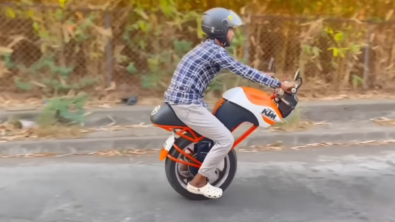 సాధారణంగా ద్విచక్ర, మూడు చక్రాల లేదా నాలుగు చక్రాల వాహనాలను చూశాము. కానీ ఒకే వీల్ కలిగి బైక్ను ఎప్పుడైనా చూశారా? మన దేశంలో అవి పెద్దగా కనిపించవు. కానీ సూరత్కు చెందిన ఓ బీటెక్ విద్యార్థి అద్భుతం చేసి చూపించాడు. అతను తయారు చేసిన వన్ వీల్ బైక్పై కూర్చున్న తర్వాత ఒక బటన్ను ఆన్ చేస్తే.. రైయ్ మంటూ దూసుకెళ్లవచ్చు.
