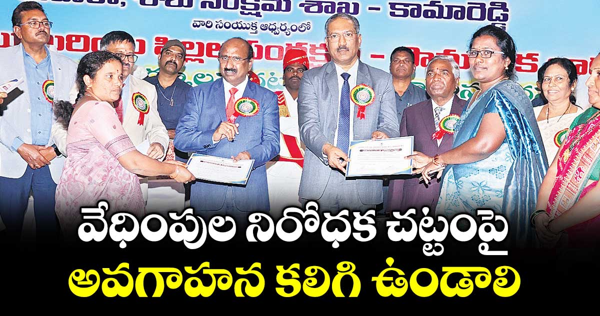 కామారెడ్డి, వెలుగు : మహిళలపై వేధింపుల నిరోధం చట్టాలపై ప్రతి ఒక్కరూ అవగాహన కలిగి ఉండాలని స్టేట్ లీగల్ సర్వీసెస్ అథారిటీ కార్యనిర్వాహక చైర్మన్, హైకోర్టు జడ్జి పి.శ్యామ్ కోషి పేర్కొన్నారు. శనివారం కామారెడ్డి జిల్లా కేంద్రంలోని కళాభారతిలో రాష్ర్ట, జిల్లా న్యాయ సేవాధికార సంస్థ, మహిళా శిశు సంక్షేమ శాఖ సంయుక్త ఆధ్వర్యంలో ‘మహిళలు, పిల్లల రక్షణ సామాజిక బాధ్యత’ అనే అంశంపై నిర్వహించిన కార్యక్రమంలో ఆయన పాల్గొని మాట్లాడారు. అంగన్వాడీ కేంద్రాల్లో చిన్నారులకు పోషకాహారం అందించాలన్నారు.