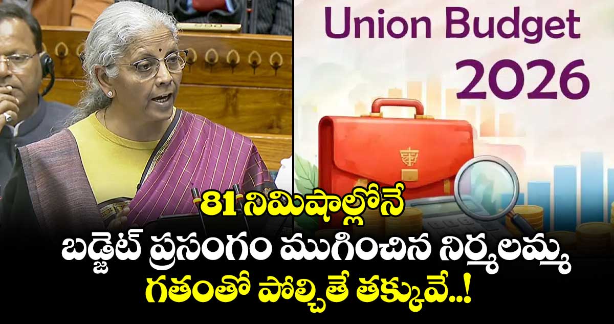 ఢిల్లీ: కేంద్ర ఆర్ధిక శాఖ మంత్రి నిర్మలా సీతారామన్ బడ్జెట్ 2026 ప్రసంగాన్ని 81 నిమి షాల్లోనే ముగించారు. ఆమె ఇతర ప్రసంగాలతో పోల్చితే ఇది తక్కువనే చెప్పుకోవాలి. 2020లో ఆమె ఏకంగా 2 గంటల 42 నిమిషాల పాటు బడ్జెట్ ప్రసంగం చేశారు. భారత పార్లమెంట్ బడ్జెట్ చరిత్రలో ఇదే అతిపెద్ద ప్రసంగం. 2025లో గంట 25 నిమిషాల పాటు ఆమె ప్రసంగించారు. అదే విధంగా 2024లో గంటా 25 నిమిషాల్లో ప్రసంగం ముగించారు. 2023లో 87 నిమిషాలు, 2022లో 92 నిమిషాల పాటు బడ్జెట్ ప్రవేశపెట్టారు. 2021లో కాగిత రహిత బడ్జెట్ ప్రవేశపె ట్టారు. అప్పుడు 1 గంటా 40 నిమిషాలు ఆమె బడ్జెట్ ప్రసంగం కొనసాగించారు.
