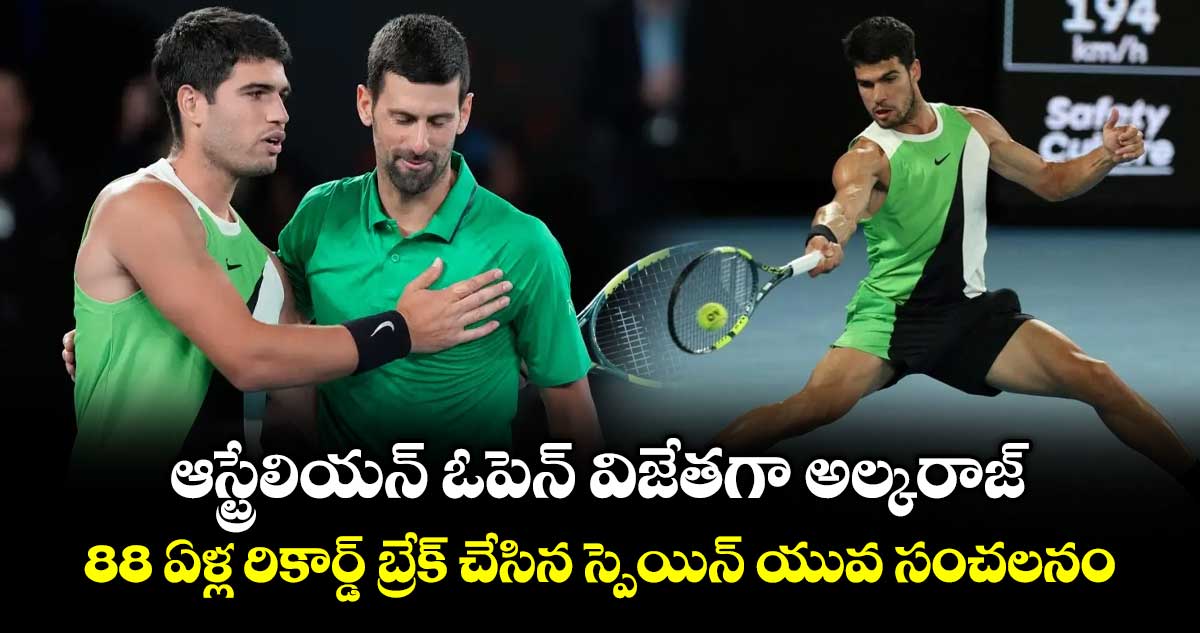 మెల్ బోర్న్: ఆస్ట్రేలియన్ ఓపెన్ మెన్స్ సింగిల్స్ విజేతగా స్పెయిన్ యువ సంచలనం కార్లోస్ అల్కరాజ్ నిలిచాడు. ఆదివారం (ఫిబ్రవరి 1) హోరాహోరీగా జరిగిన ఫైనల్ పోరులో నోవాక్ జొకోవిచ్ను ఓడించి తొలిసారి ఆస్ట్రేలియన్ ఓపెన్ కిరీటాన్ని ముద్దాడాడు. తద్వారా అల్కరాజ్ 88 సంవత్సరాల రికార్డ్ బ్రేక్ చేశాడు. డాన్ బడ్జ్ రికార్డును బద్దలు కొట్టి కెరీర్ గ్రాండ్ స్లామ్ను పూర్తి చేసిన అతి పిన్న (22 సంవత్సరాల 272 రోజులు) వయస్కుడిగా నిలిచాడు. కెరీర్లో 25వ గ్రాండ్స్లామ్ టైటిల్ కోసం ఎంతో కాలంగా వేచిచూస్తోన్న జొకోవిచ్కు మరోసారి నిరాశే ఎదురైంది.