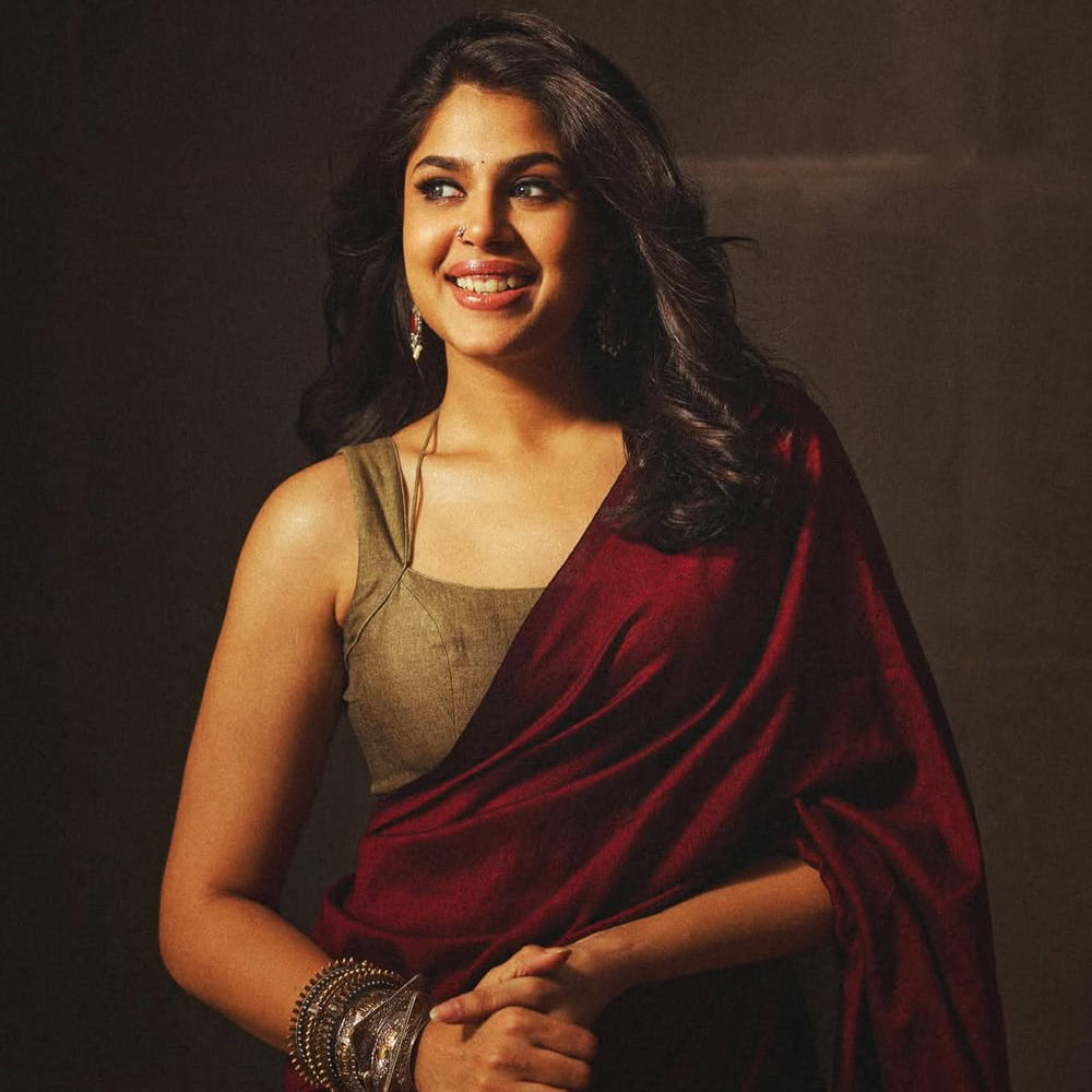 తాజాగా మెరూన్ కలర్ చీరకట్టులో చేతిలో గులాబీ పట్టుకుని ముసి ముసి నవ్వులతో ఫాలోవర్స్ హృదయాలను దోచుకుంటుంది. బ్లూ అండ్ ఆరెంజ్ కాంబోలో ఉన్న ప్లెయిన్ శారీలో కాటుక కళ్లతో మరింత అందంగా కనిపిస్తుంది ఈ అమ్మడు.
