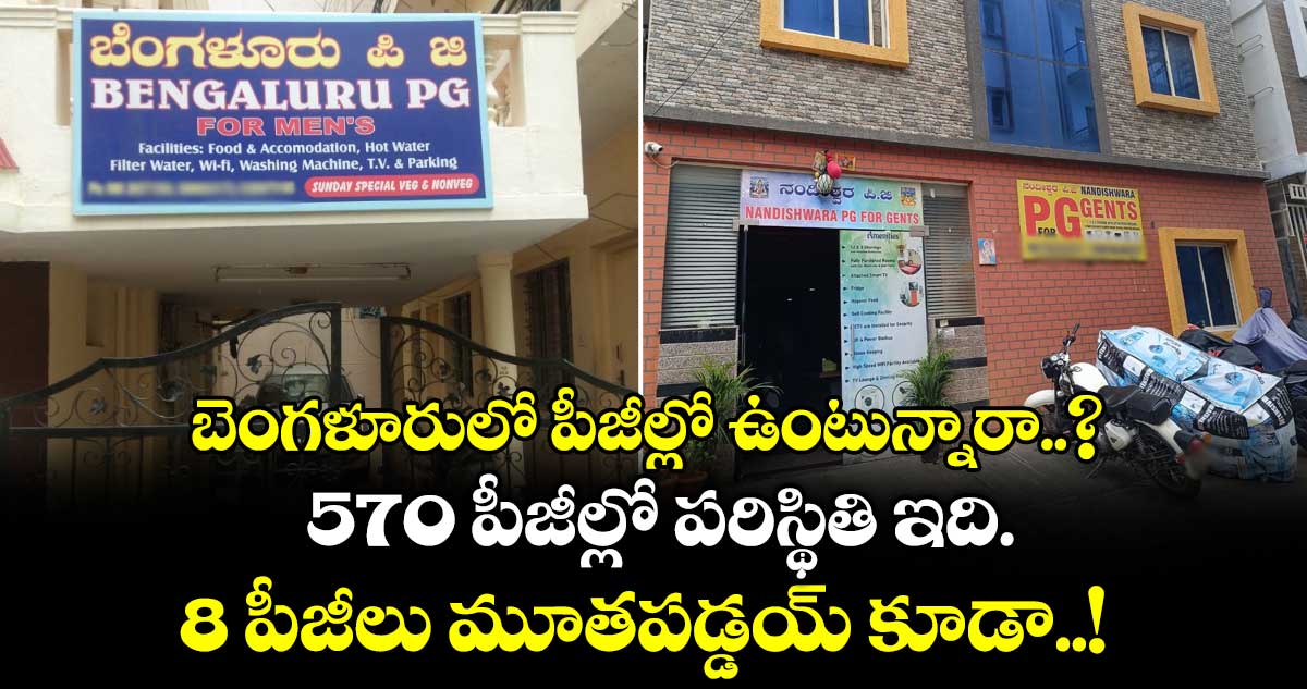 బెంగళూరు: బెంగళూరులో పీజీలు ఎంత అపరిశుభ్ర వాతావరణంలో, ఎంత అధ్వానంగా నిర్వహిస్తున్నారో గ్రేటర్ బెంగళూరు అథారిటీ (GBA) తనిఖీల్లో వెలుగులోకి వచ్చింది. బేసిక్ రూల్స్ కూడా పాటించని 574 పేయింగ్ గెస్ట్ (PG) హాస్టల్స్కు GBA నోటీసులు జారీ చేసింది. వీటిలో 8 పీజీలను GBA అధికారులు మూసివేయించారు కూడా.