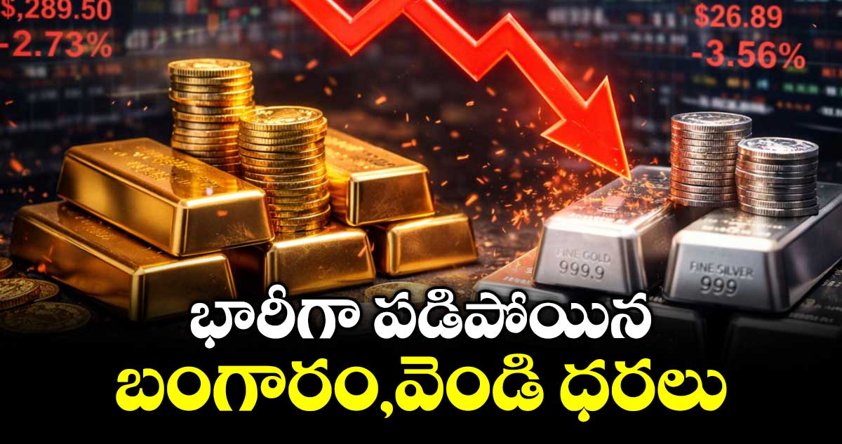 బంగారం, వెండి ధరలను ట్రాక్ చేసే గుడ్రిటర్న్ ప్రకారం, 10 గ్రా ములు గోల్డ్ (24 క్యారెట్ల) స్పాట్ ధర సోమవారం రూ.7,410 తగ్గి రూ.1,53,170 వద్ద ఉంది. వెండి ధర కేజీకి రూ.20 వేలు తగ్గి రూ.3 లక్షలకు దిగొచ్చింది.