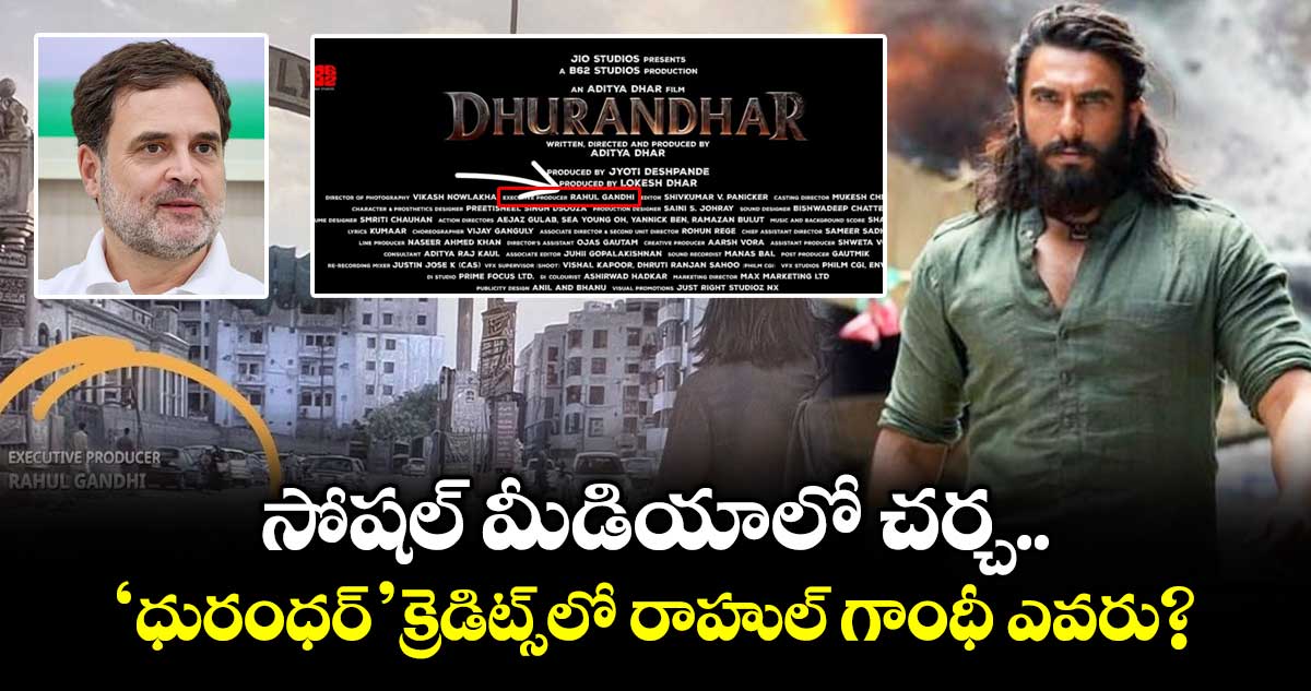 రణవీర్ సింగ్ నటించిన ‘ధురంధర్’ మూవీ ఇటీవల నెట్ఫ్లిక్స్లో ఓటీటీ విడుదలైంది. డిజిటల్ రిలీజ్ తర్వాత ఈ సినిమాకు సంబంధించిన ఓ ఆసక్తికర విషయం సోషల్ మీడియాలో చర్చనీయాంశంగా మారింది. సినిమా ఓపెనింగ్ క్రెడిట్స్లో ఎగ్జిక్యూటివ్ ప్రొడ్యూసర్గా ‘రాహుల్ గాంధీ’ అనే పేరు కనిపించింది. దీంతో పలువురు నెటిజన్లు ఆశ్చర్యానికి గురయ్యారు. రాజకీయ రంగంలో ప్రముఖుడైన కాంగ్రెస్ సీనియర్ నేత, లోక్సభ ప్రతిపక్ష నేత రాహుల్ గాంధీ పేరు కావడంతో.. ఆయనకు ఈ సినిమాతో సంబంధం ఉందా? అనే సందేహాలు తలెత్తాయి. ఈ క్రమంలోనే అనేక చర్చలు, ఊహాగానాలు సోషల్ మీడియాలో వైరల్గా మారాయి.