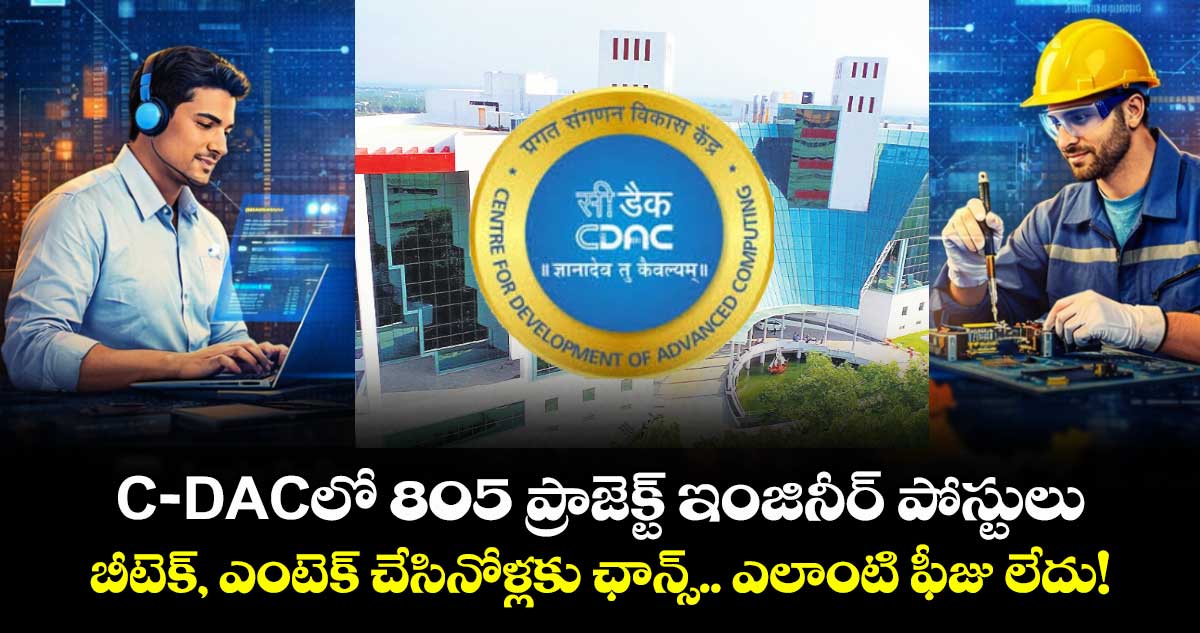 ఖాళీలు: 805 ( ప్రాజెక్ట్ ఇంజినీర్, ప్రాజెక్ట్ టెక్నీషియన్, ఇతర పోస్టులు). సి–డాక్ బెంగళూరు 93, చెన్నై 97, ఢిల్లీ 20, హైదరాబాద్ 105, కోల్కతా 15, ముంబయి 27, నోయిడా 283, పుణె 65, తిరువనంతపురం 73, సెంటర్ ఇన్ నార్త్ ఈస్ట్ 27.