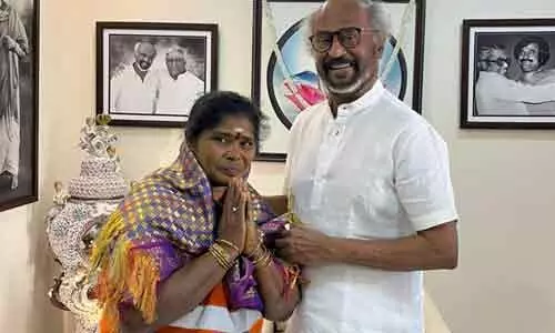 చెన్నై: చెన్నై మహానగర పాలక సంస్థలో కార్మికురాలిగా పని చేసే పద్మ(50)కు ఇటీవల రోడ్డుపై 45 తులాల బంగారం దొరికింది. దాన్ని పోలీసులకు అప్పగించి ఆమె అందరి మన్ననలు పొందారు. ఈ విషయం సూపర్స్టార్ రజనీకాంత్కు తెలిసి ఆమె పద్మను ఇంటికి పిలిపించుకున్నారు. ఆమెతో ఆప్యాయంగా మాట్లాడిన రజనీ అనంతరం ఆమెను సన్మానించారు. పద్మకు ఓ బంగారు గొలుసును కానుకగా ఇచ్చారు.