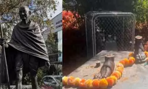 న్యూఢిల్లీ: ఆస్ట్రేలియా మెల్బోర్న్ లోని భారత సంతతి ప్రజలు ఎక్కువగా నివసించే రోవ్ విల్లే ప్రాంతంలో గాంధీ మహాత్ముని కాంస్య విగ్రహాన్ని కొందరు దుండగులు ధ్వంసం చేయడమే కాక, విగ్రహాన్ని కాజేశారు. విగ్రహం పాదాలు మాత్రమే ఉంచి, కాళ్ల వరకు కోసి వేసి ఎత్తు కెళ్లారు. ఈ సంఘటనపై భారతీయ సమాజం స్థానిక విక్టోరియా పోలీసులకు ఫిర్యాదు చేసింది. ఈ సంఘటనపై భారత్ తీవ్రంగా స్పందించింది. ఆస్ట్రేలియా ప్రభుత్వంతో ఈ విషయాన్ని అధికారికంగా చర్చించింది.