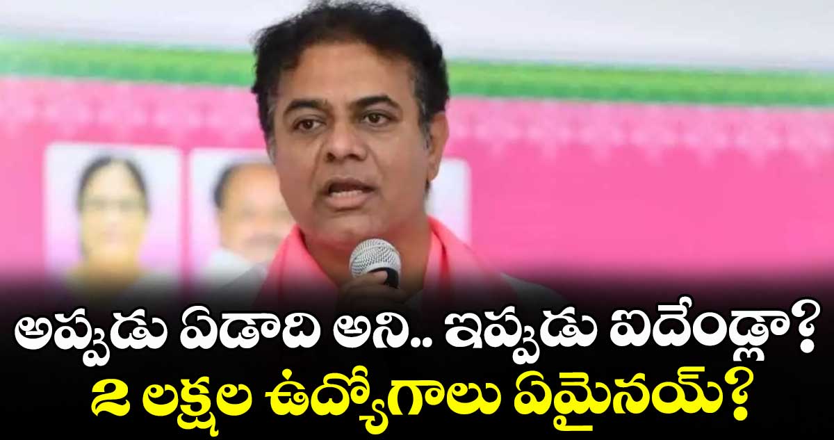 హైదరాబాద్, వెలుగు: అధికారంలోకి వచ్చిన తొలి ఏడాదిలోనే 2 లక్షల ఉద్యోగాలు ఇస్తామని హామీ ఇచ్చిన కాంగ్రెస్.. ఇప్పుడేమో ఐదేండ్లలో భర్తీ చేస్తామని చెబుతున్నదని బీఆర్ఎస్వర్కింగ్ప్రెసిడెంట్ కేటీఆర్ మండిపడ్డారు. అధికారంలోకి రాకముందు తొలి ఏడాదిలోనే అని చెప్పి.. ఇప్పుడు ఐదేండ్లలో ఇస్తామంటూ పీసీసీ చీఫ్తో సీఎం చిలుకపలుకులు పలికిస్తున్నారని ఫైర్ అయ్యారు. ఈ మేరకు మంగళవారం ప్రకటన విడుదల చేశారు. ‘‘తొలి ఏడాదిలోనే 2 లక్షల ఉద్యోగాలు ఇవ్వకుంటే ప్రభుత్వాన్ని దించేయాలంటూ ఢిల్లీ నుంచి వచ్చి మరీ ప్రియాంక గాంధీ చెప్పారు. ఆమె చెప్పిన మాటలు అమలై ఉంటే.. ఈ దగాకోరు సర్కారు కుప్పకూలి ఇప్పటికే ఏడాది పూర్తయ్యేది.