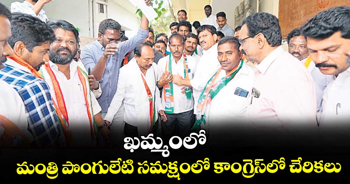 ఖమ్మం రూరల్, వెలుగు : మున్సిపల్ ఎన్నికల వేళ కాంగ్రెస్పార్టీలోకి వలసలు కొనసాగుతున్నాయి. రెవెన్యూ, సమాచారశాఖ మంత్రి పొంగులేటి శ్రీనివాసరెడ్డి సమక్షంలో మంగళవారం పలువురు సీపీఐ నాయకులు కాంగ్రెస్లో చేరారు. 27 డివిజన్ నుంచి సీపీఐ సీనియర్ నాయకులు గణపారపు వీరయ్యతోపాటు మధు, 20 మంది నాయకులు మంత్రి సమక్షంలో కాంగ్రెస్తీర్థం పుచ్చుకున్నారు.