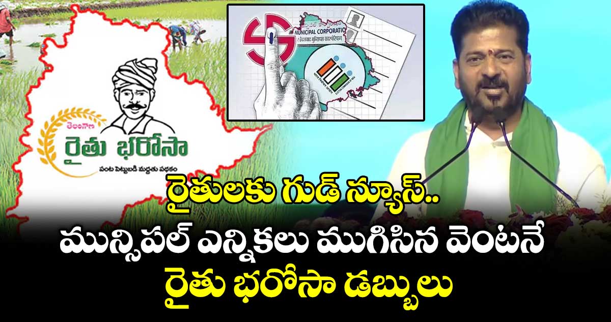 మున్సిపల్ ఎన్నికల ప్రక్రియ ముగిసిన వెంటనే.. రైతుల ఖాతాల్లో రైతు భరోసా డబ్బులు వేస్తాం అని ప్రకటించారు సీఎం రేవంత్ రెడ్డి. 2026, ఫిబ్రవరి 4వ తేదీన మిర్యాలగూడలో పర్యటించారు సీఎం. అభివృద్ధి పనులకు శంకుస్థాపనలు చేసిన తర్వాత.. బహిరంగ సభలో మాట్లాడారు సీఎం రేవంత్ రెడ్డి.