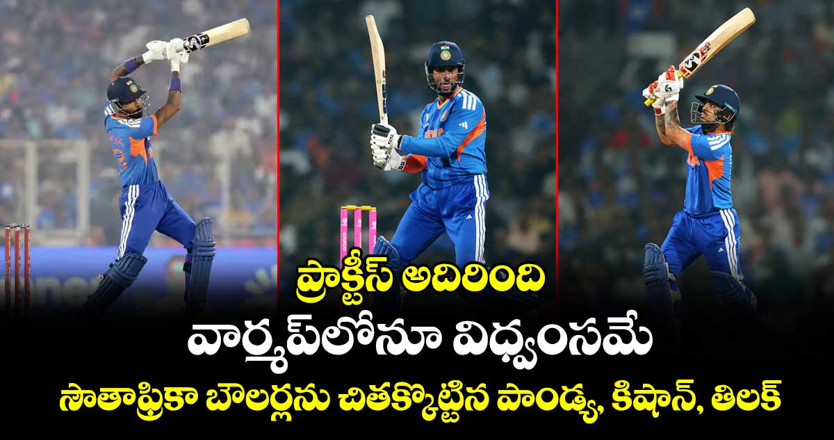 సౌతాఫ్రికాతో జరుగుతున్న వరల్డ్ కప్ వార్మప్ మ్యాచ్ లో టీమిండియా బ్యాటింగ్ లో అదరగొట్టింది. న్యూజిలాండ్ పై ఇటీవలే టీ 20 సిరీస్ లో అదరగొట్టిన టీమిండియా అదే ఫామ్ ను వరల్డ్ కప్ వార్మప్ లోనూ ప్రదర్శించింది. బుధవారం (ఫిబ్రవరి 4) ముంబై వేదికగా డీవై పాటిల్ స్టేడియంలో జరుగుతున్న ఈ ప్రాక్టీస్ మ్యాచ్ లో నిర్ణీత 20 ఓవర్లలో 6 వికెట్ల నష్టానికి 240 పరుగుల భారీ స్కోర్ చేసింది. ప్రాక్టీస్ మ్యాచ్ లోనూ కిషాన్ దంచి కొట్టాడు. 20 బంతుల్లోనే 2 ఫోర్లు, 7 సిక్సర్లతో 53 పరుగులు చేసి రిటైర్డ్ ఔటయ్యాడు. ప్రతి ఒక్కరు బ్యాటింగ్ లో అదరగొట్టడం విశేషం.