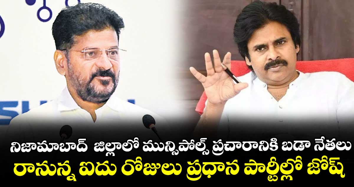 ఈ నెల 6న సీఎం రేవంత్ రెడ్డి జిల్లా పర్యటన ఖరారైంది. నగర శివారులోని బైపాస్ రోడ్ సమీపంలో సుమారు 50 వేల మందితో కాంగ్రెస్ భారీ బహిరంగ సభ నిర్వహించనుంది. నగర పాలక సంస్థతో పాటు బోధన్, ఆర్మూర్, భీంగల్ మున్సిపాలిటీల్లో కాంగ్రెస్జెండా ఎగరవేయాలనే లక్ష్యంతో నేతలు వ్యూహాలు రచిస్తున్నారు. అభ్యర్థుల ఎంపికను ఆచితూచి చేపట్టి బరిలోకి దింపినట్లు పార్టీ వర్గాలు చెబుతున్నాయి.