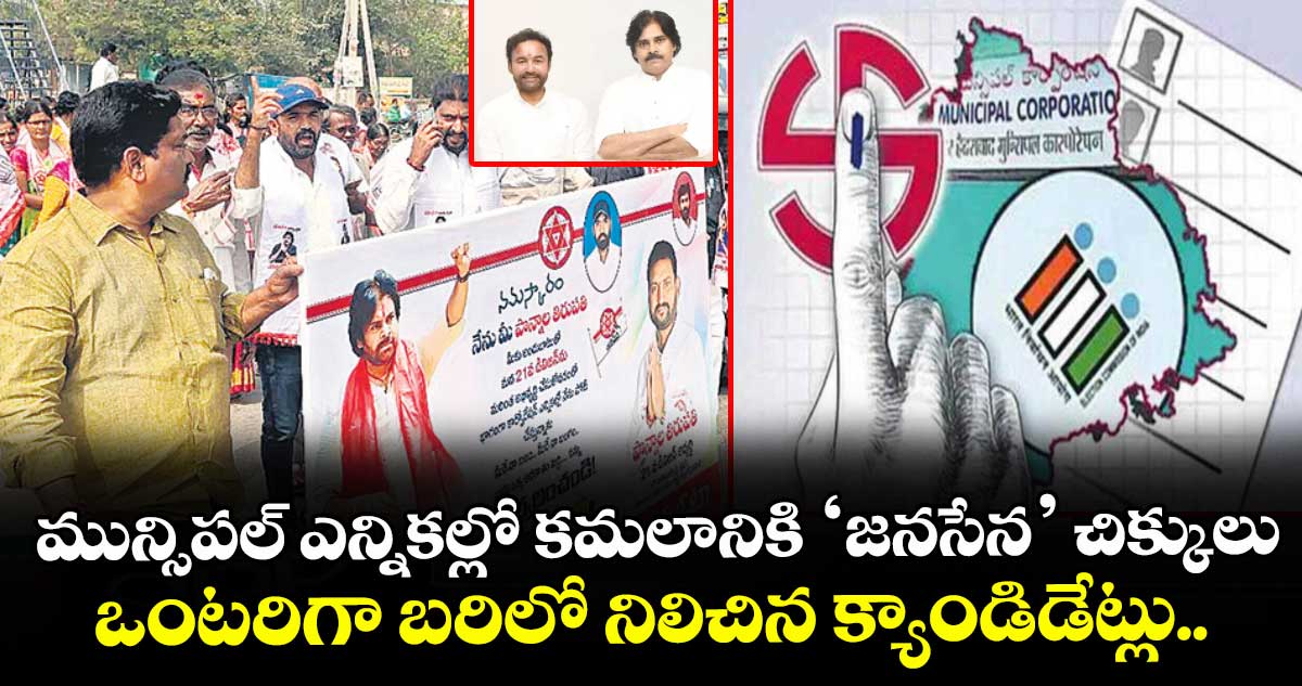 జనసేన అధినేత, ఏపీ డిప్యూటీ సీఎం పవన్ కల్యాణ్ ఆదేశాల మేరకే తాము మున్సిపల్ ఎన్నికల్లో పోటీ చేస్తున్నామని ఆ పార్టీ కరీంనగర్ జిల్లా ఇన్చార్జి రాజిరెడ్డి చెప్పారు. ఈ నెల 7, 8 తేదీల్లో పవన్కల్యాణ్లో తెలంగాణలో పర్యటిస్తారని తెలిపారు. ఏదైనా ఒకే వార్డులో జనసేన, బీజేపీ క్యాండిడేట్లు పోటీ చేస్తే.. అక్కడ జనసేనకే ఓటేయమని ప్రచారం చేయనున్నారు.
