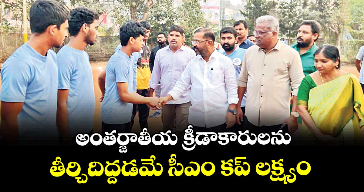 వరంగల్/ హనుమకొండ సిటీ/ పర్వతగిరి, వెలుగు: అంతర్జాతీయ క్రీడాకారులను తీర్చిదిద్దడమే రాష్ట్రంలో నిర్వహించే సీఎం కప్ లక్ష్యమని వరంగల్ పశ్చిమ ఎమ్మెల్యే నాయిని రాజేందర్రెడ్డి అన్నారు. బుధవారం ఆయన హనుమకొండ జవహర్లాల్ నెహ్రూ స్టేడియంలో నియోజకవర్గస్థాయి సీఎం కప్ పోటీలను ప్రారంభించారు. ఈ సందర్భంగా నాయిని మాట్లాడుతూ రాష్ట్ర ప్రభుత్వం విద్య, వైద్యం, వ్యవసాయం తర్వాత అత్యంత ప్రాధాన్యత క్రీడాభివృద్ధికే ఇస్తోందన్నారు.