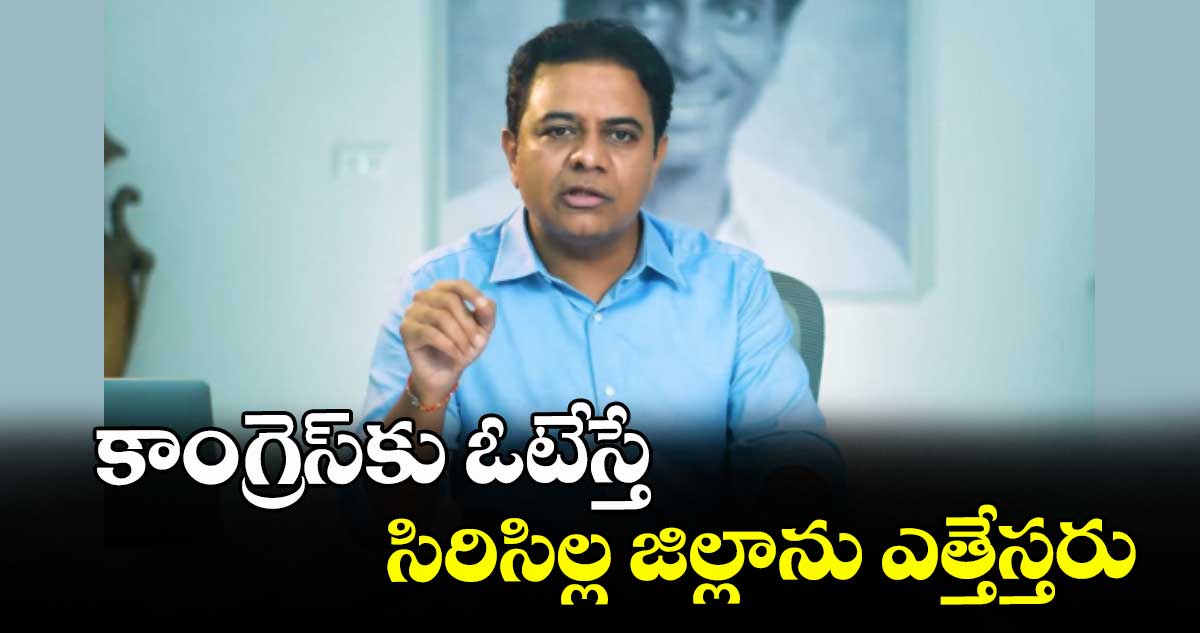 రాజన్న సిరిసిల్ల, వెలుగు: కేసీఆర్ ఏర్పాటు చేసిన చిన్న జిల్లాలను ఎత్తేయడానికి సీఎం రేవంత్ రెడ్డి కుట్ర పన్నుతున్నారని బీఆర్ఎస్ వర్కింగ్ ప్రెసిడెంట్ కేటీఆర్ ఆరోపించారు. కాంగ్రెస్కు ఓటేస్తే సిరిసిల్ల జిల్లాను ఎత్తేస్తారని అన్నారు. గురువారం సిరిసిల్లలో కేటీఆర్ మున్సిపల్ ఎన్నికల ప్రచారం నిర్వహించారు. ఈ సందర్భంగా ఆయన మాట్లాడుతూ.. ఆరు గ్యారంటీలను నమ్మి జనం కాంగ్రెస్కు ఓటేస్తే, ఒక్క హామీని కూడా నెరవేర్చలేదని మండిపడ్డారు.