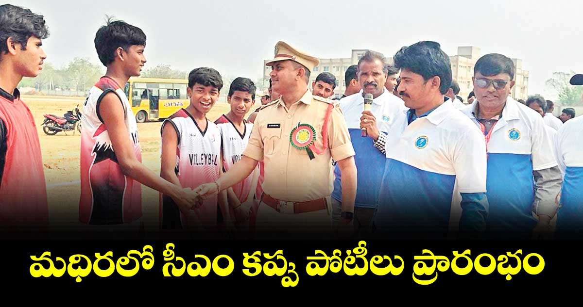 మధిర, వెలుగు: మధిర నియోజకవర్గ స్థాయి సీఎం కప్పు టోర్నమెంట్ గురువారం మధిర ఇండోర్ స్టేడియంలో ప్రారంభమయ్యాయి. మధిర రూరల్ సీఐ రమేష్ మధిర విద్యాశాఖ అధికారి ప్రభాకర్ క్రీడాకారులు పరిచయం చేసుకుని క్రీడలను ప్రారంభించారు. ఎర్రుపాలెం, మధిర, బోనకల్లు, చింతకాని,ముదిగొండ, మండలాల నుండి క్రీడాకారులు 700 మంది హాజరయ్యారు. మొదటి రోజు క్రీడలు విజయవంతంగా జరిగాయి.