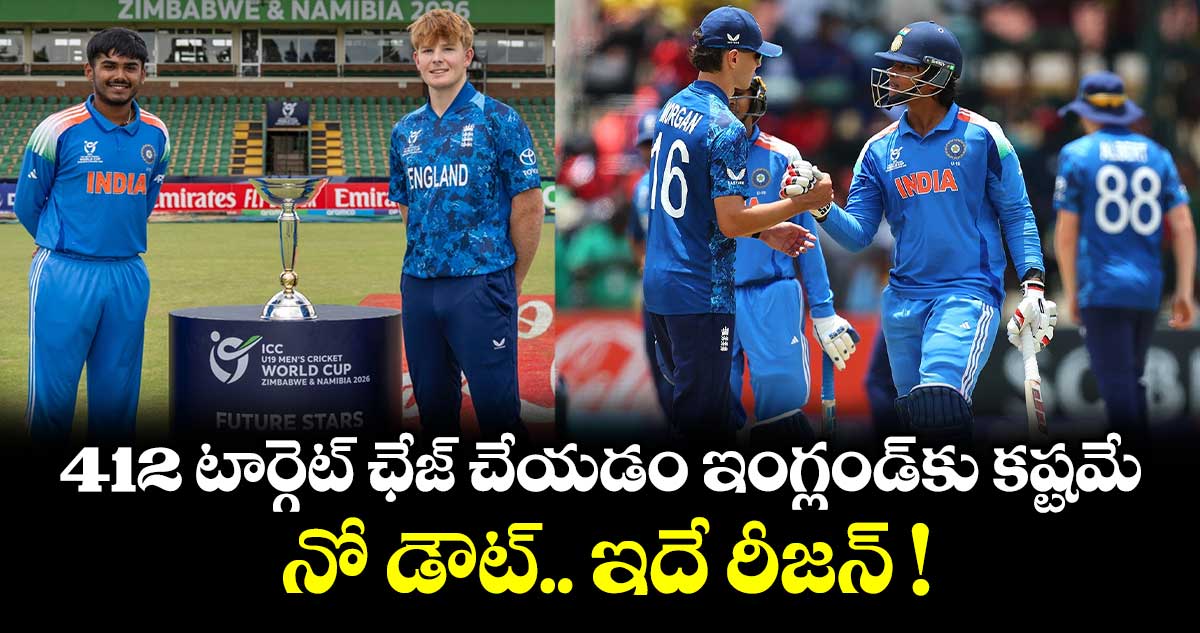 హరారే: అండర్–19 వరల్డ్ కప్ ఫైనల్ మ్యాచ్లో టీమిండియా చిచ్చరపిడుగులు సృష్టించిన విధ్వంసానికి అండర్–19 ఇంగ్లండ్ టీం బెంబేలెత్తిపోయింది. కళ్ల ముందు 412 పరుగుల టార్గెట్ కనిపిస్తుండేసరికి ఇంగ్లండ్ మద్దతుదారుల్లో కూడా ఆ జట్టు గెలుపుపై నమ్మకం సన్నగిల్లింది.