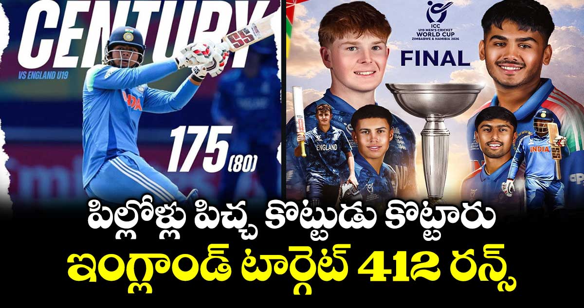 పిల్లలు అనుకున్నాం.. ఏం ఆడతారులే అనుకుంటే.. గ్రౌండ్లో దిగినప్పటి నుంచి పిచ్చపిచ్చగా రెచ్చిపోయారు. 50 ఓవర్లలో ఏకంగా 411 పరుగులు చేశారు. ఇంగ్లాండ్ బౌలర్లకు చుక్కలు చూపిస్తూ.. బంతి బంతిని చితక్కొట్టారు. బంతి కోసం వెయిటింగ్ అన్నట్లు.. బ్యాట్తో రెచ్చిపోయి.. అండర్ 19 వరల్డ్ కప్ ఫైనల్ మ్యాచ్లో.. ప్రత్యర్థి ఇంగ్లాండ్ జట్టుకు 412 పరుగుల భారీ టార్గెట్ ఇచ్చారు.
