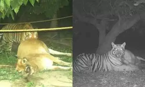 కాగా, గత వారం రోజులుగా ఎక్కడ చూసిన పులి జాడ గురించి పెద్ద ఎత్తున చర్చ జరిగింది. రోజుకో, పూటకో రూటు మారుస్తూ.. అటవీ శాఖ అధికారులకు దొరకకుండా ముప్పు తిప్పలు పెట్టింది. ఆరు రోజుల కిందట సీతా నగరం మండలం తొర్రేడులో ఆవులపై దాడి చేసి చంపిన పులి రఘునాథపురంలో ఓ గేదెను చంపింది. అనంతరం మర్రపాలెంలో మూడు లేగదూడలను బలిగొంది. దీంతో గ్రామస్థులు తీవ్ర భయభ్రాంతులకు గురయ్యారు.