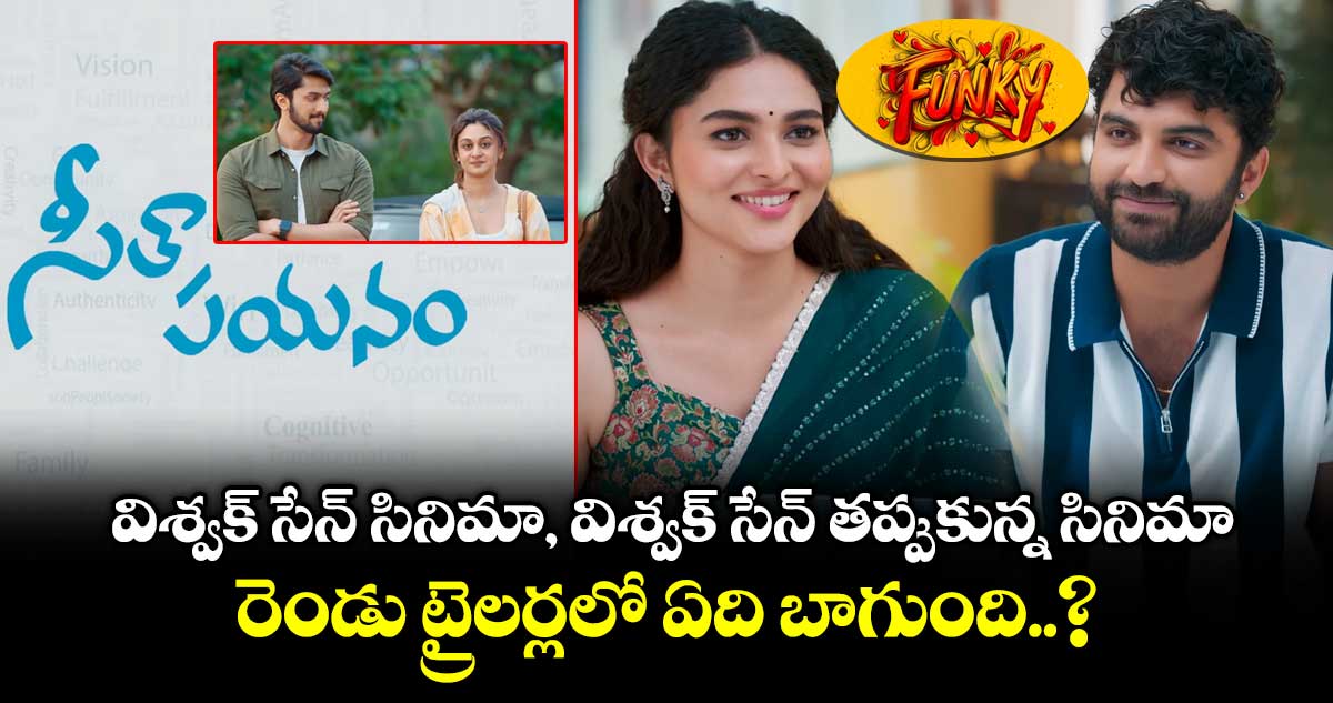 ఇక.. విశ్వక్ సేన్ హీరోగా సినిమా మొదలై.. ఆ తర్వాత దర్శకుడికి, అతనికి మధ్య విభేదాలు రావడంతో అతను తప్పుకున్న సినిమా ‘సీతా పయనం’. యాక్షన్ కింగ్ ‘అర్జున్ సర్జా’ ఈ సినిమాకు దర్శకుడు. దర్శకుడిగా ఆయనకు ఇది రెండో సినిమా. అర్జున్ సర్జా కూతురు ఐశ్వర్య ఈ సినిమా హీరోయిన్. నిరంజన్ అనే యువ నటుడు హీరో. సింపుల్ ట్రావెల్ జర్నీ ఈ సినిమా స్టోరీ లైన్. కోర్ పాయింట్.. లవ్, ఫ్యామిలీ ఎమోషన్స్. ఈ సినిమా ట్రైలర్ కూడా విశ్వక్ సేన్ ‘ఫంకీ’ ట్రైలర్ విడుదలైన శనివారమే విడుదలైంది. ట్రైలర్ చాలా క్లాసిక్గా అనిపించింది.