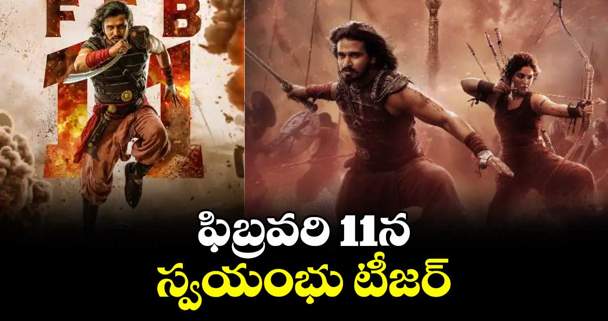 నిఖిల్ హీరోగా హిస్టారికల్ బ్యాక్డ్రాప్లో వస్తున్న పాన్ ఇండియా సినిమా ‘స్వయంభు’. భరత్ కృష్ణమాచారి దర్శకుడు. ఠాగూర్ మధు సమర్పణలో భువన్, శ్రీకర్ నిర్మిస్తున్నారు. ఇప్పటికే షూటింగ్ పూర్తి కాగా, పోస్ట్ ప్రొడక్షన్ వర్క్స్ శరవేగంగా జరుగుతున్నాయి. మరోవైపు ప్రమోషన్స్లో వేగం పెంచుతూ ఆదివారం బిగ్ అప్డేట్ ఇచ్చారు మేకర్స్. ఈ నెల 11న టీజర్ను విడుదల చేయబోతున్నట్టు తెలియజేశారు. ఈ సందర్భంగా రిలీజ్ చేసిన పోస్టర్లో నిఖిల్ యాక్షన్ లుక్ ఇంప్రెస్ చేసింది.