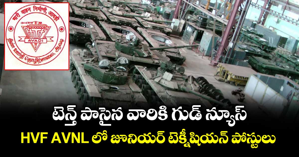 హెవీ వెహికల్స్ ఫ్యాక్టరీ (హెచ్వీఎన్ఏవీఎన్ఎల్) జూనియర్ టెక్నీషియన్ పోస్టుల భర్తీకి నోటిఫికేషన్ విడుదల చేసింది. ఆసక్తి, అర్హత గల అభ్యర్థులు ఆఫ్లైన్లో అప్లై చేసుకోవచ్చు. అప్లికేషన్ సమర్పించడానికి చివరి తేదీ ఫిబ్రవరి 14.