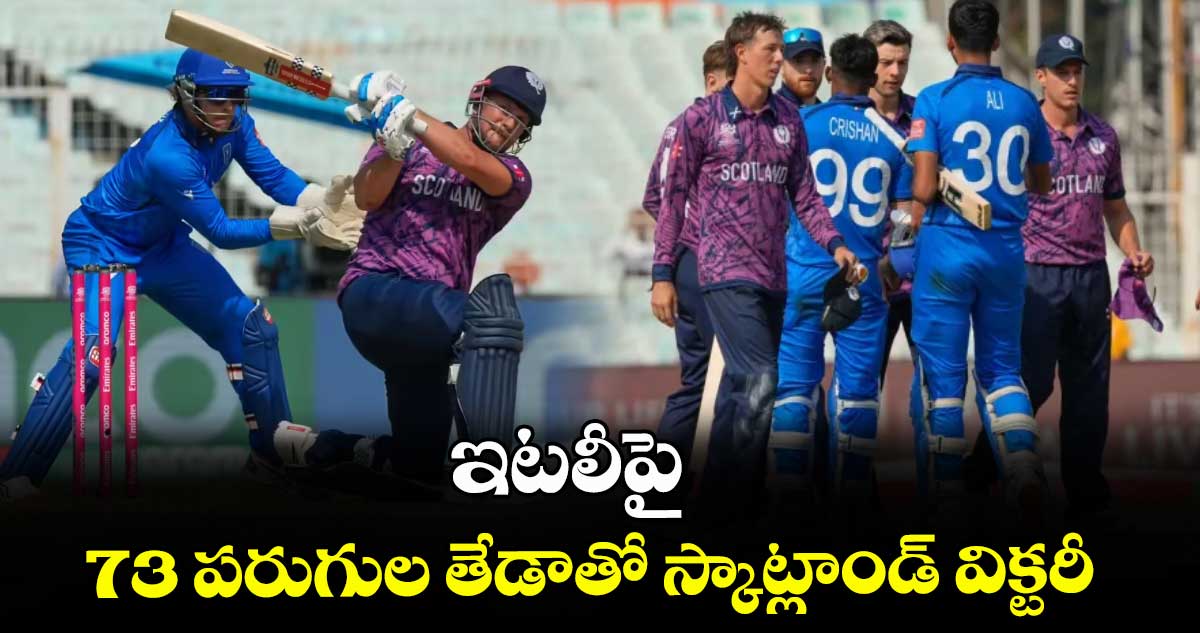 టీ 20 వరల్డ్ కప్ లీగ్ మ్యాచ్ లో.. ఇటలీని చిత్తు చేసి గెలిచింది స్కాట్లాండ్ టీం. మొదట బ్యాటింగ్ చేసిన స్కాట్లాండ్ 207 పరుగులు చేసింది. 208 పరుగుల విజయ లక్ష్యంతో బరిలోకి దిగిన ఇటలీ జట్టు.. 134 పరుగులకే ఆలౌట్ అయ్యింది. 73 పరుగుల తేడా విజయం సాధించి.. వరల్డ్ కప్ సిరీస్ లో బోణీ కొట్టింది స్కాట్లాండ్.