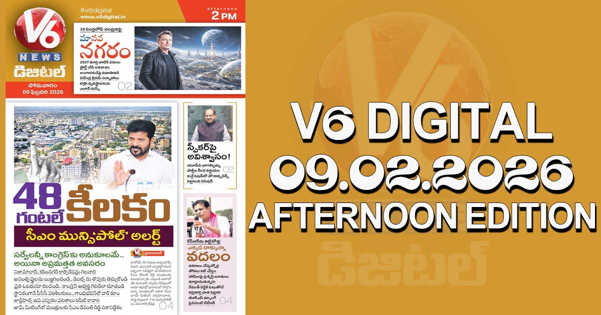 Reading Time: < 1 minute V6 DIGITAL 09.02.2026 AFTERNOON EDITION Caption of Image. ఈ 48 గంటలు చాలా కీలకమన్న సీఎం రేవంత్! చంద్రుడిపై నవనగరం..నిర్మాణం ఎప్పుడు కానుందంటే? ఎక్కడ దాక్కున్నా వదలమంటున్న కేటీఆర్.. ఎవరినంటే? ఇంకా మరెన్నో.. క్లిక్ చేయండి Post navigation Naga Chaitanya: బ్లాక్బస్టర్ ‘తండేల్’కు ఏడాది పూర్తి.. అభిమానులకు థ్యాంక్స్ చెప్పిన చైతూ టీటీడీ సిబ్బందికి క్రీడా పోటీలు..ఆటలతో మానసిక ఉల్లాసం.. పని ఒత్తిడి ఉండదు.. టీటీడీ అదనపు ఈవో వెంకయ్య చౌదరి