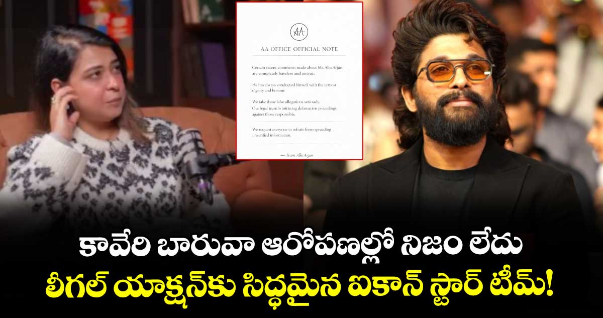 కావేరి బారువా చేసిన ఈ ఆరోపణలు వైరల్ కావడంతో అల్లు అర్జున్ అభిమానులు ఆగ్రహం వ్యక్తం చేయగా.. బన్నీ టీం వెంటనే రంగంలోకి దిగింది. లేటెస్ట్ గా ఆమె చేసిన ఈ ఆరోపణలన్నీ పచ్చి అబద్ధాలని కొట్టిపారేస్తూ అధికారికంగా ప్రకటన రిలీజ్ చేశారు. అల్లు అర్జున్ ఎప్పుడూ అత్యంత హుందాతో, గౌరవంతో ప్రవర్తిస్తారు. ఆయనపై వస్తున్న ఈ నిరాధారమైన వ్యాఖ్యలను మేము సీరియస్గా తీసుకుంటున్నాము. తప్పుడు ప్రచారం చేస్తున్న వారిపై మా లీగల్ టీం డెఫమేషన్ దాఖలు చేస్తోంది అని స్పష్టం చేశారు. ఇలాంటి అవాస్తవాలను ఎవరూ నమ్మొద్దని కోరింది. ఇలాంటి ధృవీకరించని కంటెంటెను షేర్ చేయకుండా ఉండాలని అల్లు అర్జున్ టీం సూచించింది.