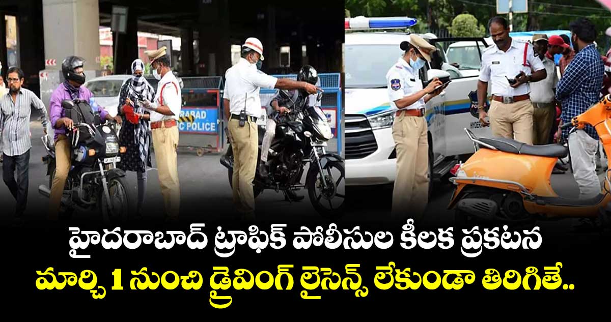 హైదరాబాద్: రహదారి భద్రతను మెరుగుపరిచే దిశగా హైదరాబాద్ ట్రాఫిక్ పోలీసుల కీలక నిర్ణయం తీసుకున్నారు. మార్చి 1 నుంచి డ్రైవింగ్ లైసెన్స్ లేకుండా వాహనాలు నడిపే వారిపై నిఘా పెట్టి ప్రత్యేక తనిఖీలు చేయాలని ట్రాఫిక్ పోలీసులు నిర్ణయించారు. హైదరాబాద్ నగరమంతటా ఈ మేరకు ట్రాఫిక్ పోలీసులు నిరంతరం ప్రత్యేక డ్రైవ్లు నిర్వహించనున్నారు. ప్రయాణ సమయంలో చెల్లుబాటు అయ్యే అసలు డ్రైవింగ్ లైసెన్స్ ఉండాల్సిందేనని పోలీసులు తేల్చి చెప్పారు. లైసెన్స్ లేని వారు వెంటనే ఆర్టీఏ కార్యాలయం ద్వారా పొందాలని సూచించారు.