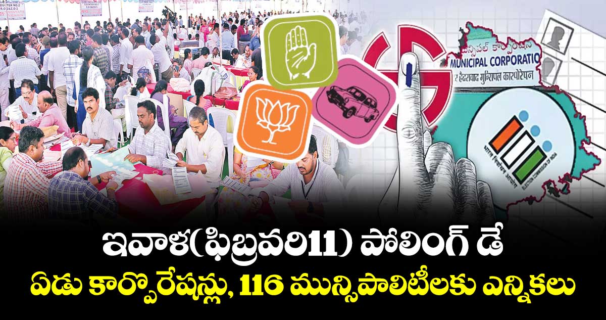 రాష్ట్రంలో గడువు ముగిసిన మున్సిపాలిటీలు, కార్పొరేషన్ల ఎన్నికల నిర్వహణ కోసం రాష్ట్ర ఎన్నికల కమిషనర్రాణి కుముదిని జనవరి 27న షెడ్యూల్ రిలీజ్ చేశారు. ఏడు కార్పొరేషన్లు, 116 మున్సిపాలిటీల్లోని 2,996 వార్డులకు ఎన్నికలు నిర్వహిస్తామని ప్రకటించారు. గెలిచిన అభ్యర్థులతో ఫిబ్రవరి 16న పరోక్ష పద్ధతిలో మేయర్, చైర్ పర్సన్ ఎన్నికలు ఉంటాయని చెప్పారు. ఈ క్రమంలో జనవరి 28 నుంచి 30 వరకు అభ్యర్థుల నుంచి నామినేషన్లు స్వీకరించారు. ఫిబ్రవరి 4న అభ్యర్థులకు గుర్తుల కేటాయింపు పూర్తయింది. అదే రోజు ఇద్దరు కార్పొరేటర్లు, 12 మంది కౌన్సిలర్లు ఏకగ్రీవమైనట్టు ప్రకటించారు. ఇక నారాయణ పేట జిల్లా మక్తల్ మున్సిపాలిటీలో 6వ వార్డు నుంచి పోటీలో ఉన్న బీజేపీ అభ్యర్థి ఎ.మహదేవప్ప మంగళవారం ఆత్మహత్య చేసుకోగా, ఇక్కడ పోలింగ్ను వాయిదా వేసినట్టు రిటర్నింగ్ ఆఫీసర్ పాలెం శివయ్య ప్రకటించారు. ఇవిపోగా మిగతా 412 డివిజన్లలో కార్పొరేటర్లు, 2,569 వార్డులలో కౌన్సిలర్ల ఎన్నిక కోసం నేడు(బుధవారం) పోలింగ్ నిర్వహణకు పకడ్బందీ ఏర్పాట్లు చేసినట్టు ఎన్నికల కమిషనర్రాణి కుముదిని మంగళవారం ఒక ప్రకటనలో తెలిపారు.