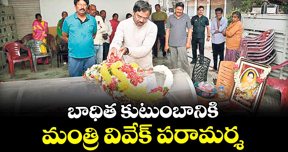కోల్బెల్ట్, వెలుగు: మంచిర్యాల జిల్లా కేంద్రంలోని వికాస్నగర్కు చెందిన కాంగ్రెస్ సీనియర్ లీడర్ రావికంటి వెంకటేశ్వర్లు కుటుంబసభ్యులను బుధవారం రాష్ట్ర కార్మిక, గనుల శాఖ మంత్రి వివేక్ వెంకటస్వామి పరామర్శించారు. వెంకటేశ్వర్లు భార్య అనసూర్య మంగళవారం గుండెపోటుతో మృతిచెందారు. విషయం తెలుసుకున్న మంత్రి ఆయన ఇంటికి చేరుకొని అనసూర్య భౌతిక కాయానికి నివాళులర్పించారు. బాధిత కుటుంబానికి తన ప్రగాఢ సానుభూతి వ్యక్తంచేసి ఓదార్చారు.