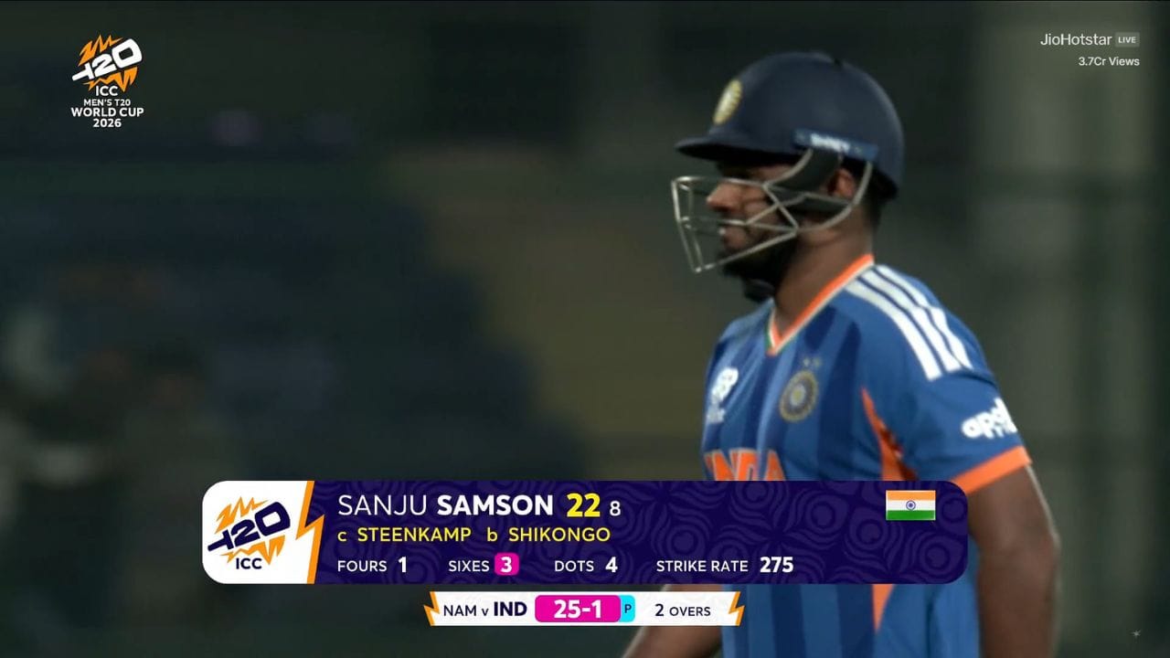 India vs Sanju Samson: నమీబియాతో జరిగిన మ్యాచ్లో సంజు శాంసన్ అద్భుతమైన ఆరంభం ఇచ్చాడు. కానీ, ఓ పేలవమైన షాట్ ఆడి 22 పరుగులకే వికెట్ కోల్పోయాడు. తన మంచి ఆరంభాన్ని భారీ ఇన్నింగ్స్గా మార్చుకోలేకపోయాడు. అభిషేక్ శర్మ అనారోగ్యానికి గురైన సంగతి తెలిసిందే. 2026 టీ20 ప్రపంచ కప్లో సంజు శాంసన్ కు సువర్ణావకాశం లభించింది. నమీబియాతో జరిగిన మ్యాచ్లో అతను ప్లేయింగ్ XIలో చోటు దక్కించుకున్నాడు. కానీ, అతను ఈ అవకాశాన్ని కూడా వృధా చేసుకున్నాడు. నమీబియాతో జరిగిన మ్యాచ్లో అతను కేవలం 22 పరుగులకే ఔటయ్యాడు. విశేషమేమిటంటే, సంజు శాంసన్ అద్భుతమైన ఆరంభం ఇచ్చాడు. తన పరుగులన్నింటినీ బౌండరీలతో స్కోర్ చేయడం గమనార్హం. కానీ, ఆ తర్వాత అతను పేలవమైన షాట్ ఆడి పెవిలియన్కు వెళ్లాడు.