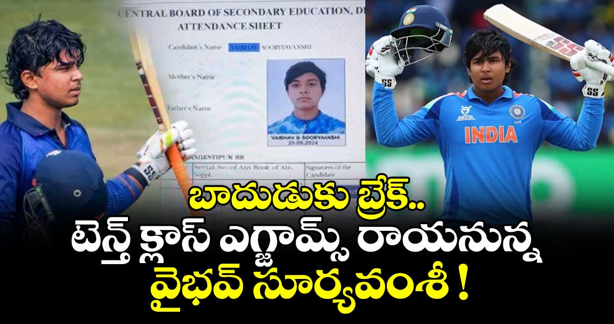 అతను బ్యాట్ పడితే సిక్సరే. స్పిన్ బౌలింగ్ అయినా.. పేస్ బౌలింగ్ అయినా.. ఈ చిచ్చరపిడుగుకు తెలిసిందల్లా అటాకింగ్ బ్యాటింగ్ ఒక్కటే. బ్యాట్ పడితే బాదుడే. ఫాస్టెస్ట్ సెంచరీల స్పెషలిస్ట్. ప్రత్యర్థి జట్టు బౌలర్లకు పట్టపగలే చుక్కలు చూపిస్తున్న యువ తేజం వైభవ్ సూర్యవంశీ పదో తరగతి పరీక్షలు రాయడానికి ప్రిపేర్ అవుతున్నాడు.