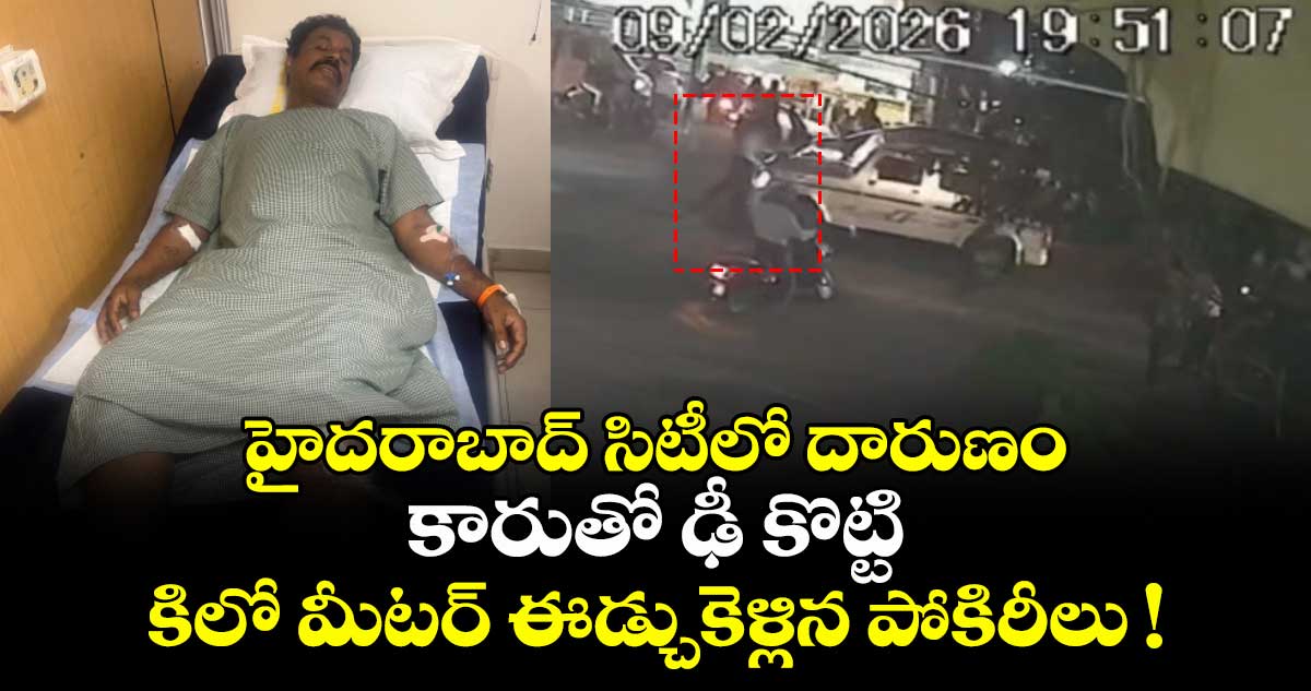 హైదరాబాద్: కుషాయిగూడ పోలీస్ స్టేషన్ పరిధిలో దారుణమైన రోడ్డు ప్రమాదం జరిగింది. ఆఫీసుకు వెళ్లి ఇంటికి తిరిగి వెళుతున్న ప్రైవేటు ఉద్యోగిని కారుతో ఢీ కొట్టి పోకిరీలు పైశాచిక ఆనందం పొందిన ఘటన కలకలం రేపింది. ఆకతాయిలు కారుతో వ్యక్తిని ఢీ కొట్టి కిలోమీటర్ మేర లాక్కుపోయిన ప్రమాద ఘటన ఆలస్యంగా వెలుగులోకి వచ్చింది.