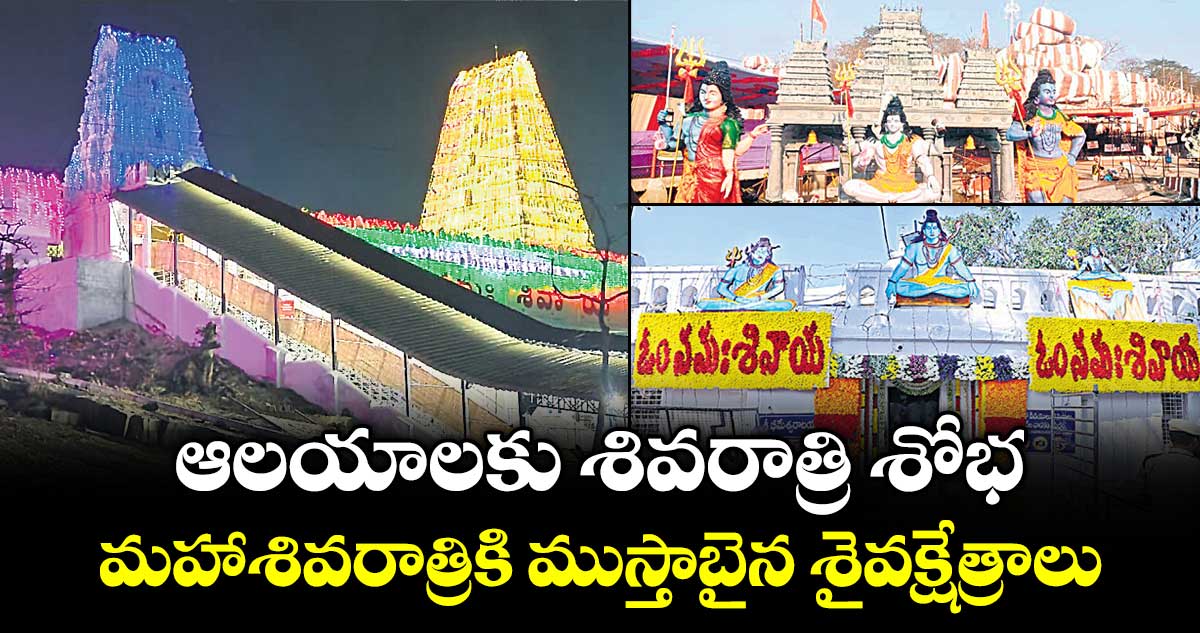 వెలుగు, నెట్వర్క్: మహాశివరాత్రి పర్వదినాన్ని పురస్కరించుకుని తెలంగాణలోని ప్రముఖ శైవ క్షేత్రాలు అందంగా ముస్తాబయ్యాయి. వేములవాడ రాజరాజేశ్వర, కాళేశ్వరం ముక్తీశ్వర స్వామి ఆలయం, మెదక్ ఏడుపాయల క్షేత్రం, కొమురవెల్లి మల్లన్న, కీసర గుట్ట రామలింగేశ్వర ఆలయాలు ఆధ్యాత్మిక శోభను సంతరించుకున్నాయి. లక్షలాది మంది భక్తులు తరలిరానున్న నేపథ్యంలో ప్రభుత్వ యంత్రాంగం ఈ ఆలయాల్లో విస్తృత ఏర్పాట్లు చేపట్టింది. భక్తులకు ఎలాంటి ఇబ్బందులు తలెత్తకుండా దర్శనం, వసతి, రవాణా, భద్రత, వైద్య సదుపాయాలపై అధికారులు ప్రత్యేక దృష్టి పెట్టారు. మహాశివరాత్రి సందర్భంగా అన్ని ఆలయాల్లో ప్రత్యేక పూజలు, అభిషేకాలు, ఉత్సవాలు వైభవంగా నిర్వహించేందుకు ఏర్పాట్లు పూర్తయ్యాయి. ఫ్రీ బస్సు సర్వీసులు, స్టేయింగ్ రూమ్స్, చలువ పందిళ్లు, తాగునీరు, హెల్త్క్యాంపులు ఏర్పాటు చేశారు.