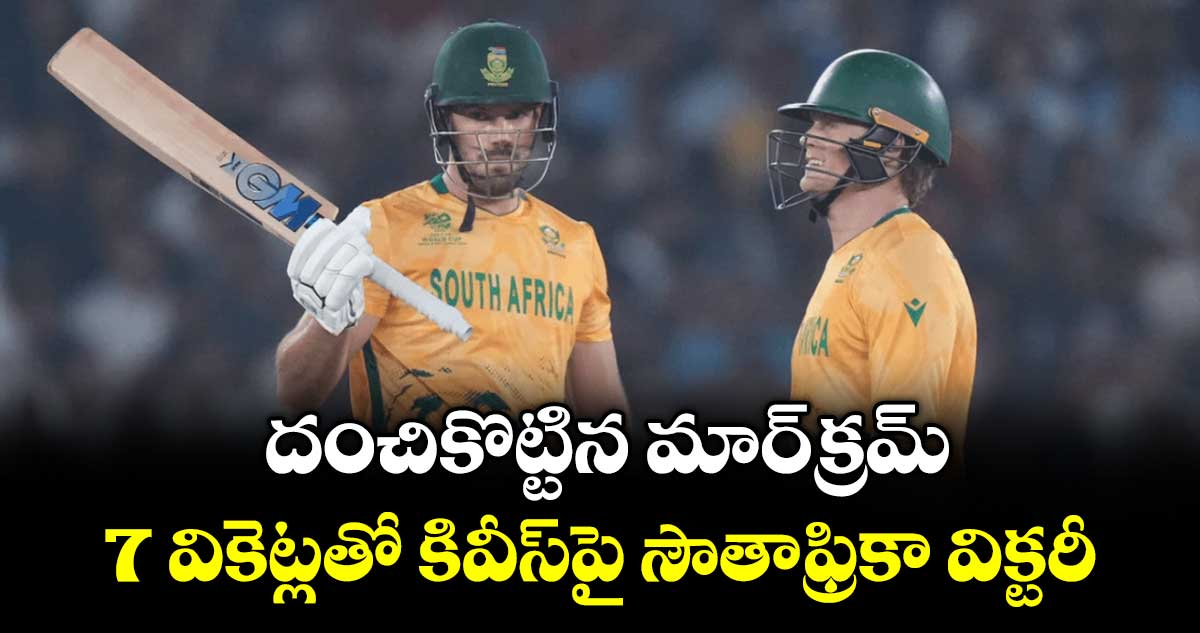 అహ్మదాబాద్: టీ20 వరల్డ్ కప్లో ఆసక్తి రేపిన ‘వాలెంటైన్స్ డే’ మ్యాచ్లో న్యూజిలాండ్పై సౌతాఫ్రికాదే పైచేయి అయింది. కెప్టెన్ ఐడెన్ మార్క్రమ్ (44 బాల్స్లో 8 ఫోర్లు, 4 సిక్సర్లతో 86 నాటౌట్) ఖతర్నాక్ బ్యాటింగ్తో ముందుండి నడిపించడంతో శనివారం జరిగిన గ్రూప్–డి మ్యాచ్లో సఫారీ టీమ్ ఏడు వికెట్ల తేడాతో కివీస్ను చిత్తు చేసింది. ఈ ఏకపక్ష పోరులో టాస్ ఓడి బ్యాటింగ్కు దిగిన న్యూజిలాండ్ నిర్ణీత 20 ఓవర్లలో 175/7 స్కోరు చేసింది.