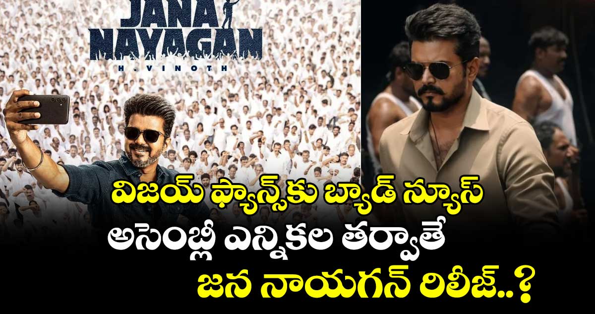 చెన్నై: దళపతి విజయ్ అభిమానులకు బ్యాడ్ న్యూస్. విజయ్ నటించిన లేటేస్ట్ చిత్రం జన నాయగన్ విడుదల మరోసారి వాయిదా పడ్డట్లు తెలుస్తోంది. తమిళనాడు అసెంబ్లీ ఎన్నికల తర్వాతే మూవీ విడుదల కానున్నట్లు సమాచారం. ఈ మేరకు కెనడియన్ డిస్ట్రిబ్యూటర్ యార్క్ సినిమాస్ జన నాయగన్ విడుదలపై కీలక ప్రకటన చేసింది. 2026, ఏప్రిల్ 30కి ముందు విజయ్ జన నాయగన్ సినిమా విడుదల కాదని తేల్చిచెప్పింది. సినిమా రిలీజ్ డేట్ను త్వరలోనే ప్రకటిస్తామని తెలిపింది.