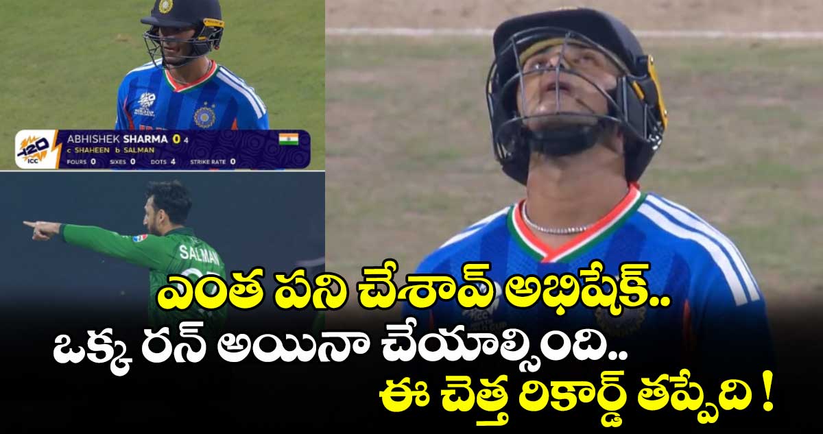 ఈ టీ20 వరల్డ్ కప్లో USAతో ఆడిన ఓపెనింగ్ మ్యాచ్లో కూడా అభిషేక్ డకౌట్ అయి పెవిలియన్ చేరాడు. పాక్ మ్యాచ్లోనూ అదే జరిగింది. అభిషేక్ ఆడిన గత ఆరు ఇన్నింగ్స్లో ఇది నాలుగో డకౌట్ కావడం గమనార్హం. అంతేకాదు.. టీ20 వరల్డ్ కప్స్లో 3 సార్లు డకౌట్ అయిన చెత్త రికార్డ్ ఆశిష్ నెహ్రా పేరు మీద ఉండగా.. రెండు సార్లు డకౌట్ అయిన రికార్డ్ గౌతమ్ గంభీర్, విరాట్ కోహ్లీ, రవీంద్ర జడేజా, శివమ్ దూబే పేరు మీద ఉంది. ఇప్పుడు అభిషేక్ శర్మ కూడా ఈ చెత్త రికార్డును మూటగట్టుకోవాల్సి వచ్చింది.