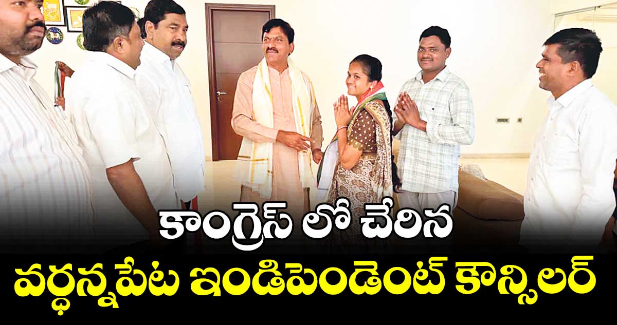 వర్ధన్నపేట, వెలుగు: వర్ధన్నపేట మున్సిపాలిటీ ఐదో వార్డు నుంచి ఇండిపెండెంట్కౌన్సిలర్గా గెలిచిన శిభారాణి ఆదివారం కాంగ్రెస్ లో చేరారు. మంత్రి పొంగులేటి శ్రీనివాస్రెడ్డి ఆమెకు కండువా కప్పి పార్టీలోకి ఆహ్వానించారు.
