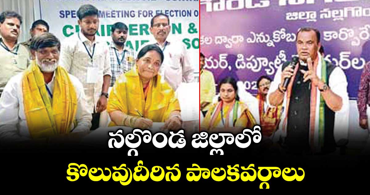 నల్గొండ, వెలుగు: జిల్లాలో చైర్ పర్సన్, వైస్ చైర్ పర్సన్ ఎన్నికలు ప్రశాంతంగా నిర్వహించారు. నల్గొండ కార్పొరేషన్ తో పాటు, 11 మున్సిపాలిటీ లలో ఎన్నికైన నూతన కార్యవర్గ సభ్యులతో ప్రమాణ స్వీకారం చేయించిన అనంతరం చైర్ పర్సన్, వైస్ చైర్ పర్సన్ ఎన్నిక నిర్వహించగా సభ్యులు ఏకగ్రీవంగా ఎన్నుకొన్నారు. నల్గొండ తొలి మేయర్ పీఠాన్ని బుర్రి చైతన్య శ్రీనివాస్ రెడ్డి చేజిక్కించుకోగా డిప్యూటీ మేయర్ స్థానాన్ని కాంగ్రెస్ పార్టీకి చెందిన మహమ్మద్ అష్రఫ్ అలీ ఆమేర్ దక్కింది.