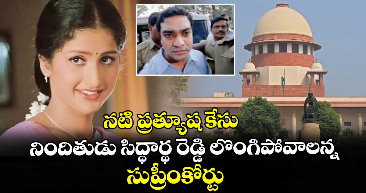 సంచలన సృష్టించిన సినీ నటీ ప్రత్యూష ఆత్మహత్య కేసులో సుప్రీం కోర్టు కీలక తీర్పు ఇచ్చింది. నిందితుడు సిద్ధార్థ రెడ్డి నాలుగు వారాల్లో లొంగిపోవాలని ఆదేశించింది. హైకోర్టు తీర్పును సవాలు చేస్తూ సిద్ధార్థ రెడ్డి దాఖలు చేసిన పిటిషన్ ను కొట్టివేసింది ధర్మాసనం. హైకోర్టు ఇచ్చిన రెండేళ్ల జైలు శిక్ష తీర్పును సమర్ధించిన సుప్రీం కోర్టు నాలుగు వారాల్లో లొంగిపోవాలని సిద్ధార్థ రెడ్డిని ఆదేశించింది.