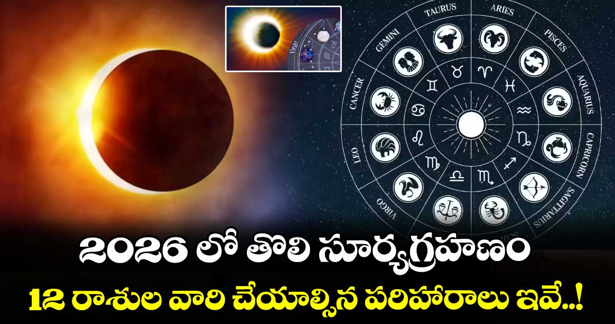 ఖగోళ శాస్త్రవేత్తలు. . జ్యోతిష్య పండితులు తెలిపిన వివరాల ప్రకారం 2026 ఫిబ్రవరి 17న ఈ ఏడాది తొలి సూర్య గ్రహణం ఏర్పడనుంది. శని మూల త్రికోణ రాశి అయిన కుంభరాశిలో మధ్యాహ్నం 3:26 గంటలకు ప్రారంభమై సాయంత్రం 7:57 గంటలకు ముగుస్తుంది. ఈ గ్రహణం భారతదేశంలో కనిపించదు. కాబట్టి మనకు సూతక కాలం చెల్లదు. అయితే దీని ప్రభావం 12 రాశుల వారిపై ఏదో ఒక విధంగా ఉంటుంది. సూర్య గ్రహణం సమయంలో చంద్రుడు, శుక్రుడు, రాహువు, బుధుడు కుంభరాశిలోనే ఉంటారు.. ఈ కారణంగా ద్వాదశ రాశులపై ప్రభావం పడుతుంది.