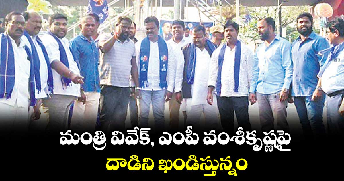 అనంతరం బాల్క సుమన్ దిష్టిబొమ్మను దగ్ధం చేశారు. ఈ సందర్భంగా రాష్ట్ర అధ్యక్షులు బూర్గుల వెంకటేశ్వర్లతో కలిసి చెన్నయ్య మీడియాతో మాట్లాడారు. రాజకీయాల్లో విమర్శలు, ప్రతి విమర్శలు ఉండాలి కానీ దాడులకు పాల్పడడం సరైన పద్ధతి కాదన్నారు. రాజిరెడ్డి అనే వ్యక్తి పథకం ప్రకారం వివేక్పై దాడికి కుట్ర పన్నారని ఆరోపించారు. దాడులు చేసుకోవడం సరి కాదని, వెంటనే వారికి క్షమాపణ చెప్పాలని డిమాండ్ చేశారు. ఈ కార్యక్రమంలో సుధాకర్, కోటేశ్వరరావు, కట్ట శ్రీనివాస్, బైండ్ల శ్రీనివాస్, ఆనంద్ రావు, శ్రీకాంత్, జయ కుమార్, బాలకృష్ణ, అనిల్ కుమార్, రాకేష్, లలిత, రమేశ్, మస్తాన్ తదితరులు పాల్గొన్నారు.
