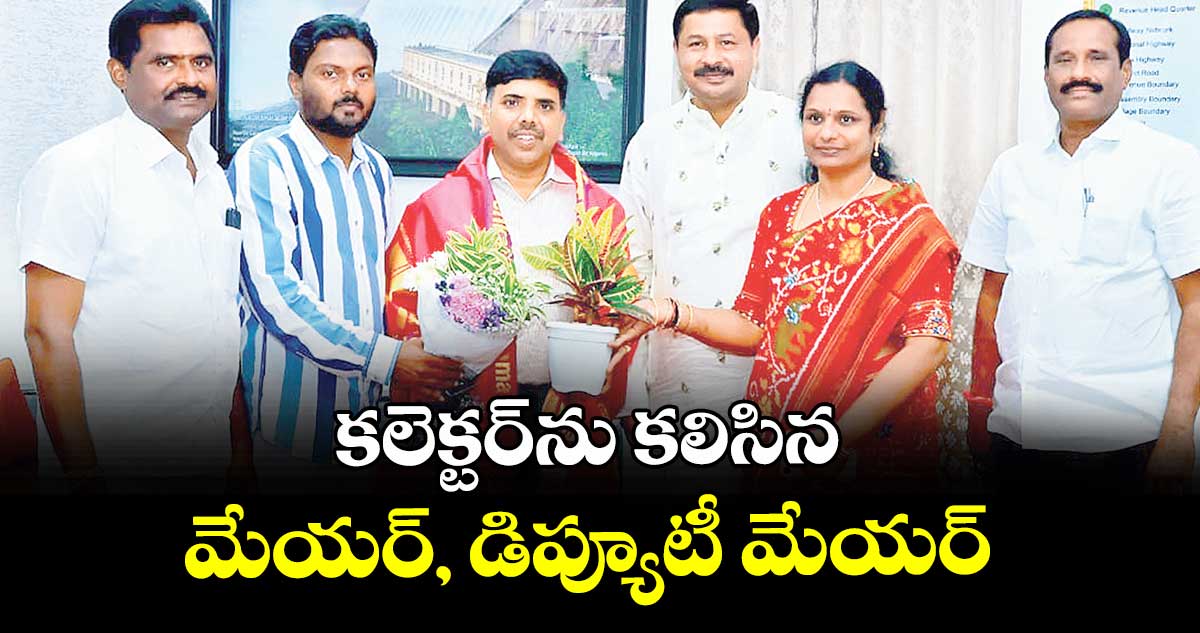 నల్గొండ అర్బన్, వెలుగు: నల్గొండ కార్పొరేషన్ మేయర్గా ఎన్నికైన బుర్రి చైతన్య శ్రీనివాస్రెడ్డి, డిప్యూటీ మేయర్మహ్మాద్ అష్రఫ్అలీ ఆమెర్ బుధవారం కలెక్టర్ చంద్రశేఖర్ను మర్యాదపూర్వకంగా కలిశారు. కలెక్టరేట్లోని చాంబర్లో కలెక్టర్కు పుష్పగుచ్ఛం అందజేశారు.