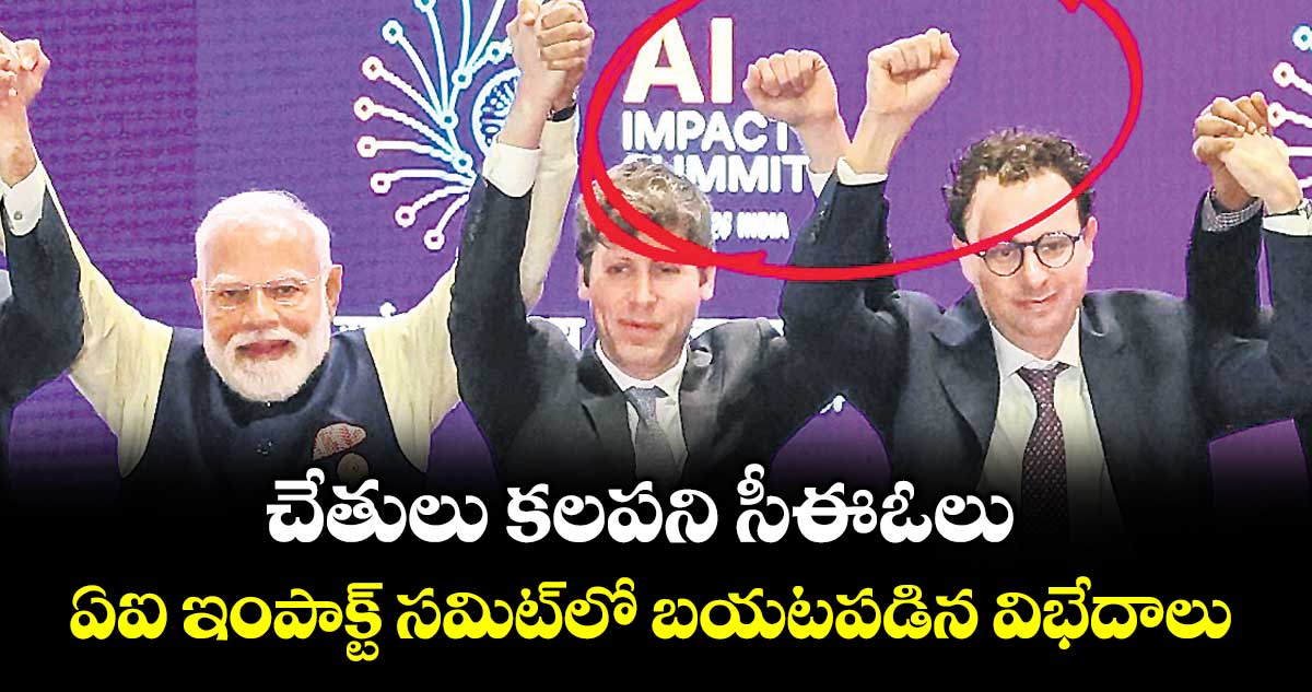 న్యూఢిల్లీ: దేశ రాజధాని ఢిల్లీలో జరుగుతున్న ‘ఇండియా ఏఐ ఇంపాక్ట్ సమిట్’లో ఇబ్బందికర సన్నివేశం చోటు చేసుకుంది. ఈ సమిట్లో ప్రధాని నరేంద్ర మోదీతో పాటు ప్రపంచస్థాయి టెక్ లీడర్లంతా ఒకే వేదికపై కనిపించారు. ఈ సందర్భంగా వారంతా గ్రూప్ ఫొటోకు పోజిచ్చిన సమయంలో ఓపెన్ ఏఐ సీఈఓ శామ్ ఆల్ట్మన్, ఆంథ్రోపిక్ సీఈఓ డారియో అమోడెయ్ చేతులు కలిపేందుకు ఇష్టపడలేదు. వారిద్దరూ పిడికిలి బిగించి ఫొటోకు పోజులిచ్చారు.