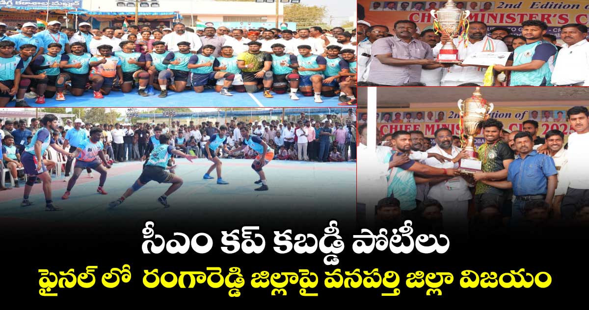 మక్తల్ లో నాలుగు రోజుల పాటు జరిగిన సెకండ్ ఎడిషన్ సీఎం కప్ కబడ్డీ ఛాంపియన్ షిప్ పోటీలు ఘనంగా ముగిశాయి. ముగింపు వేడుకలకు మంత్రి వాకిటి శ్రీహరి ముఖ్య అతిథిగా హాజరై విజేతలకు బహుమతులు అందజేశారు. ఫైనల్లో పురుషుల విభాగంలో రంగారెడ్డి జిల్లా జట్టుపై వనపర్తి జిల్లా 20 పాయింట్ల తేడాతో గెలుపొందగా, మహిళల విభాగంలో రంగారెడ్డి జిల్లా జట్టు పై జోగులాంబ గద్వాల జిల్లా జట్టు 5 పాయింట్ల తేడాతో గెలుపొందింది. ఇరు జట్ల మధ్య ఆడుతున్న తీరును మంత్రి శ్రీహరి స్వయంగా వీక్షించారు. విజేతలకు శుభాకాంక్షలు తెలియజే శారు.
